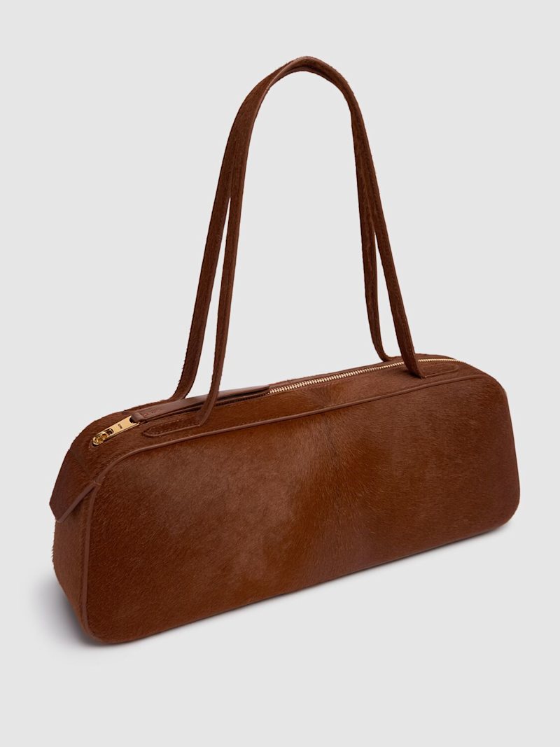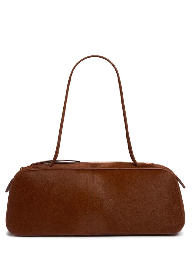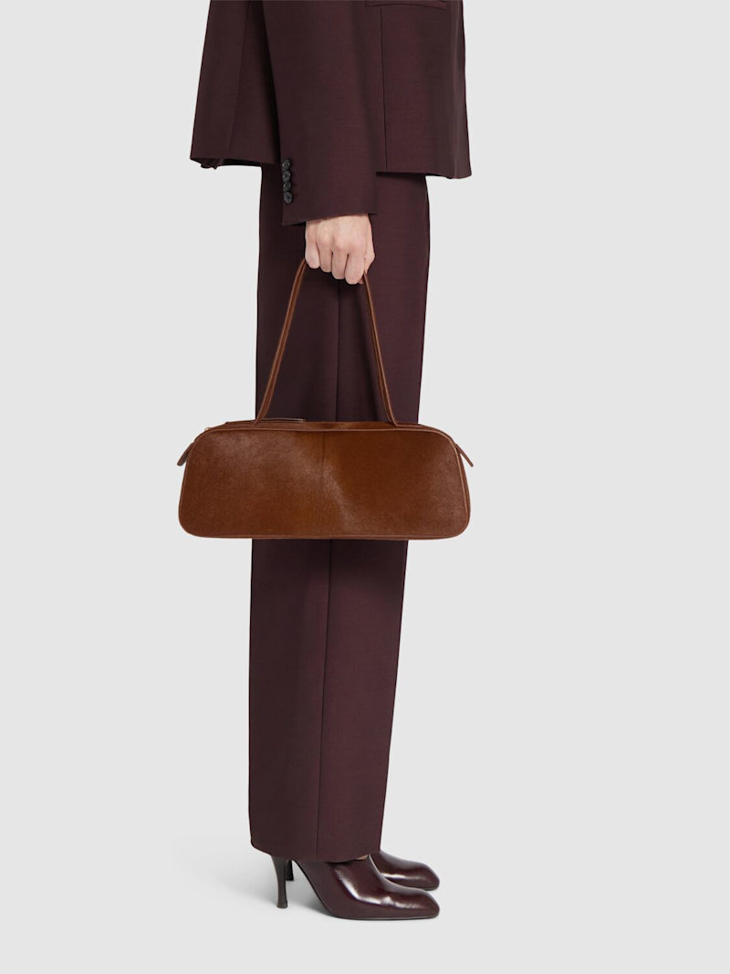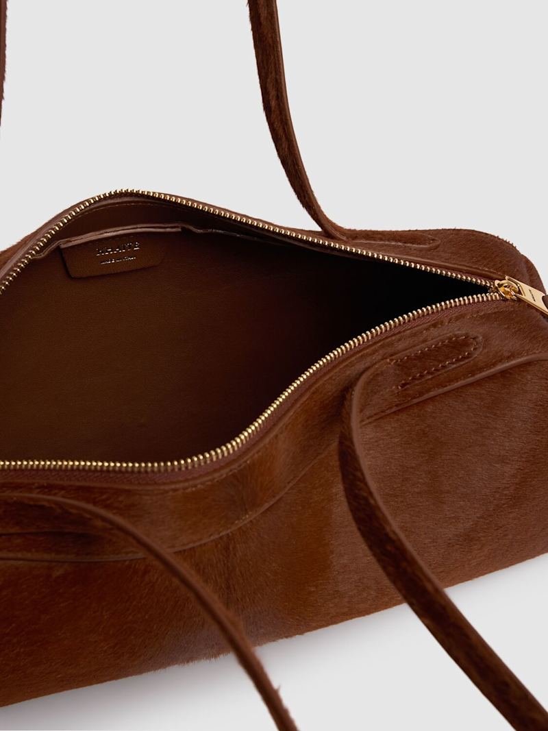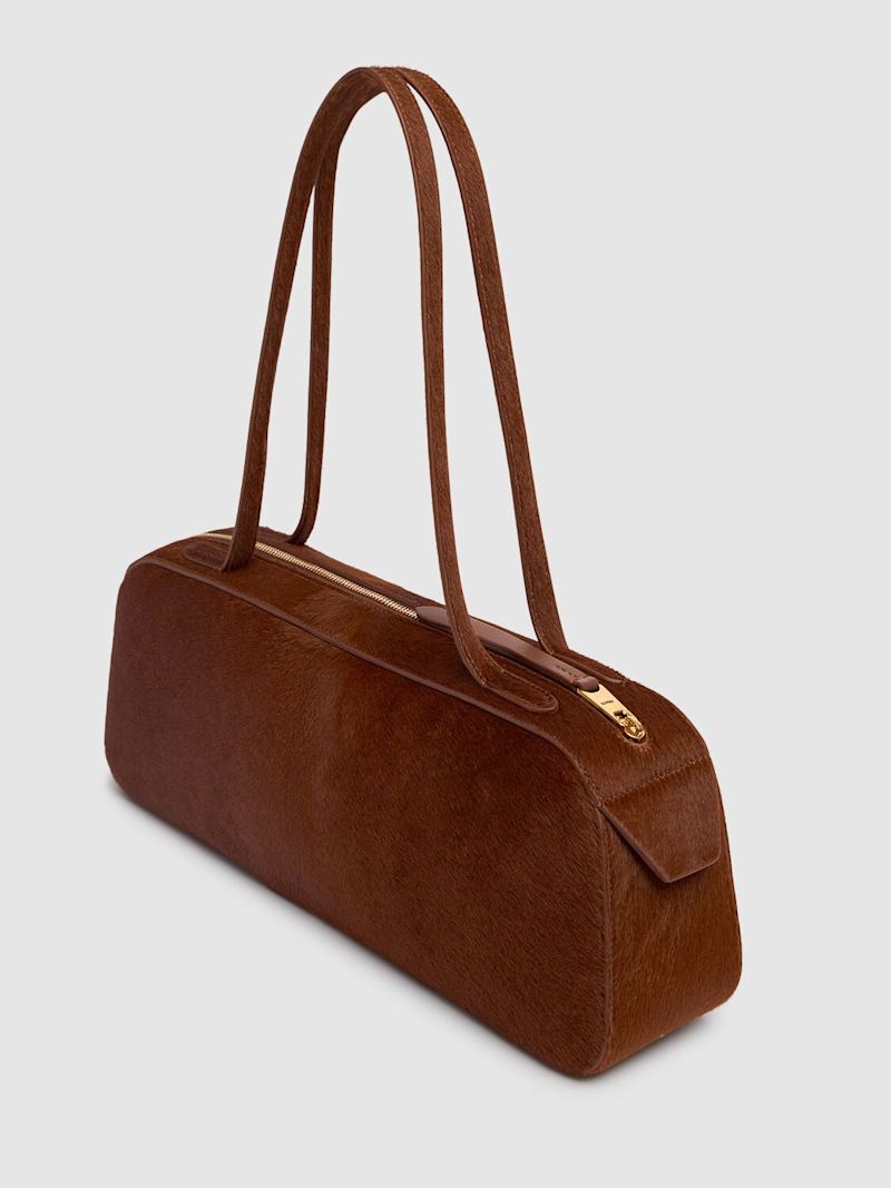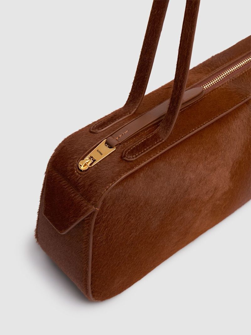 Simona带毛皮革单肩包 - 赭色 - 女士 - Khaite - 手提垂直高:22厘米.