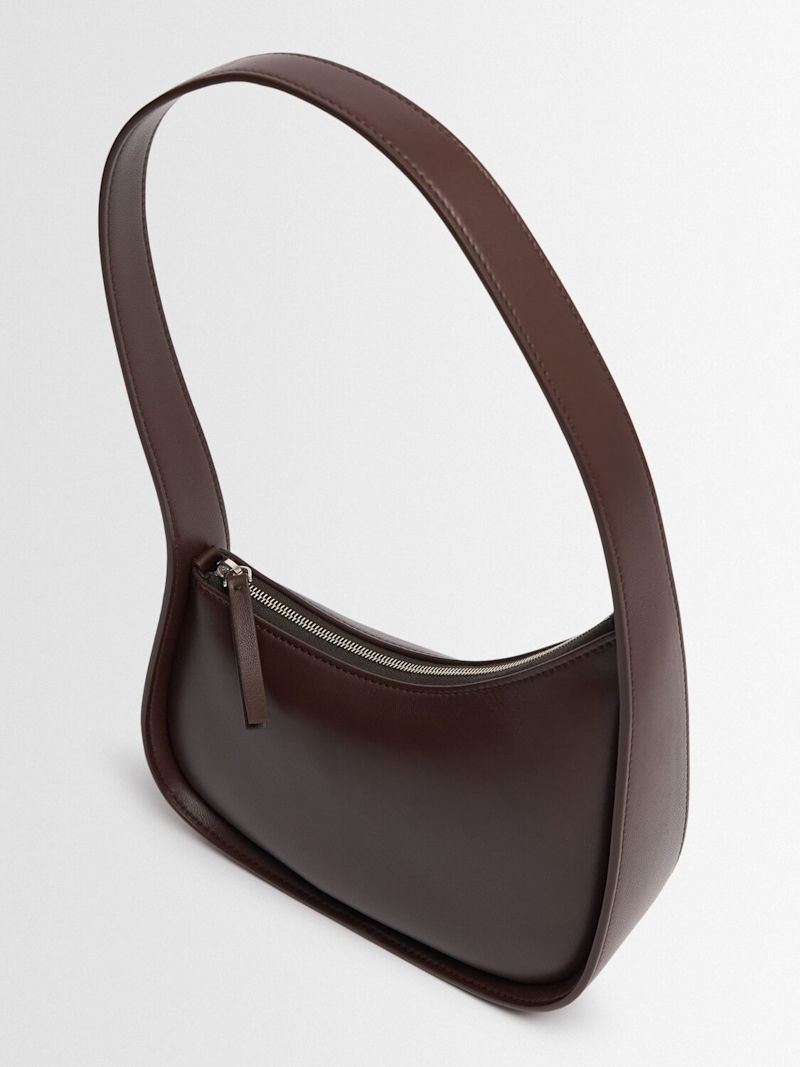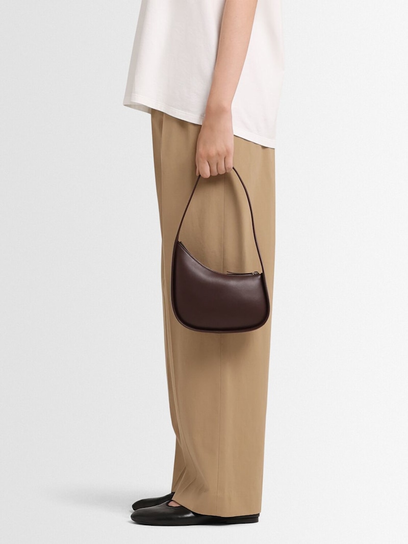 半月形皮革单肩包 - 麻棕色 - 女士 - The Row - 固定式肩带.