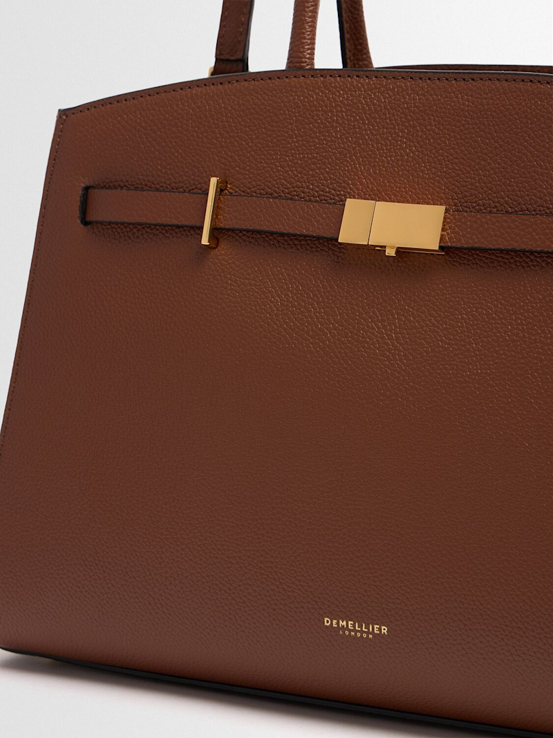 The Midi Hudson粒面皮革手提包 - 棕黄色 - 女士 - DeMellier - 可拆卸可调节束带.