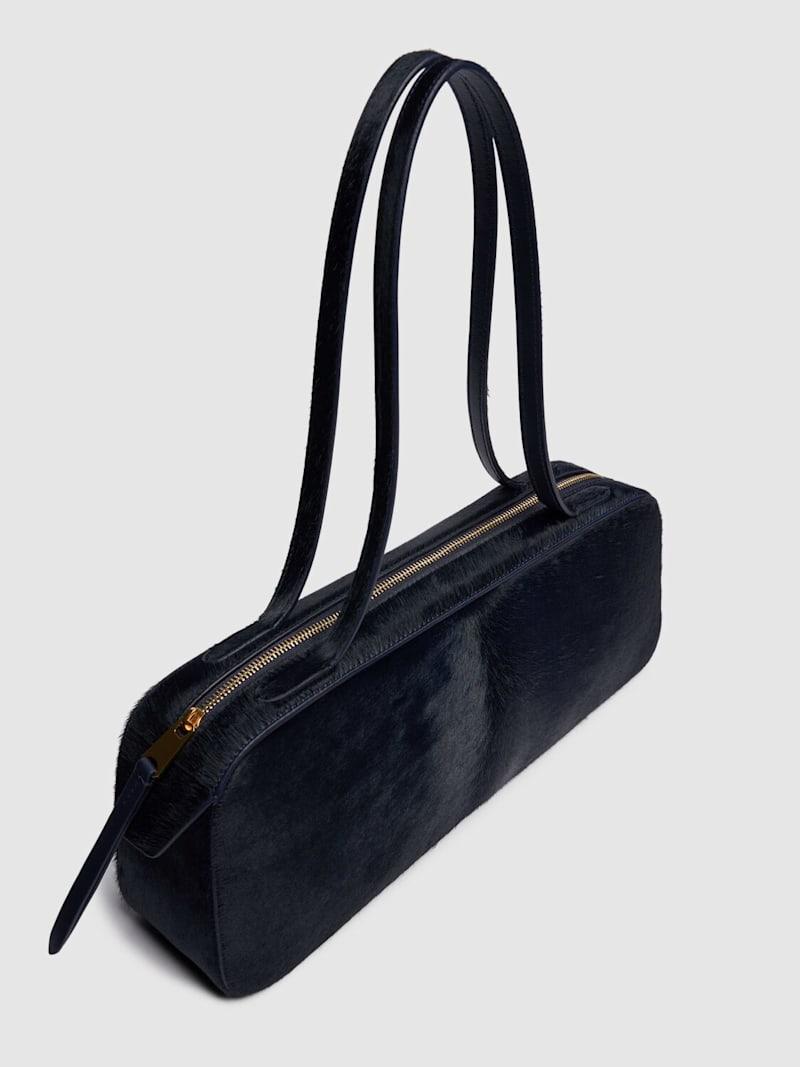 Simona带毛皮革单肩包 - 午夜蓝 - 女士 - Khaite - 肩带垂直高度:21厘米.