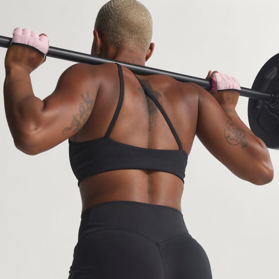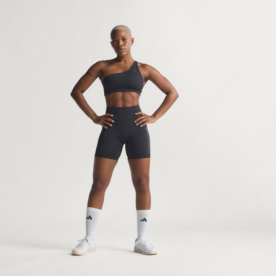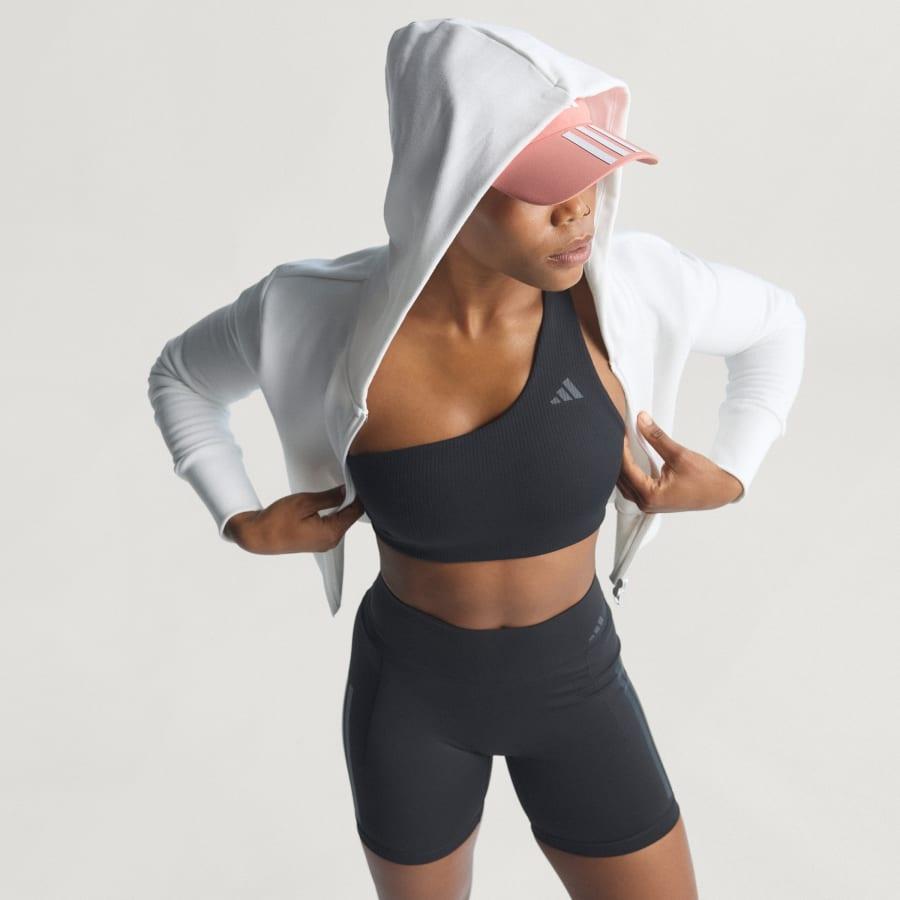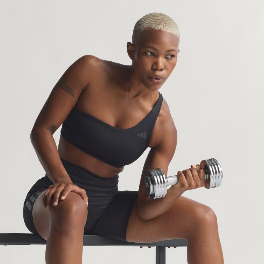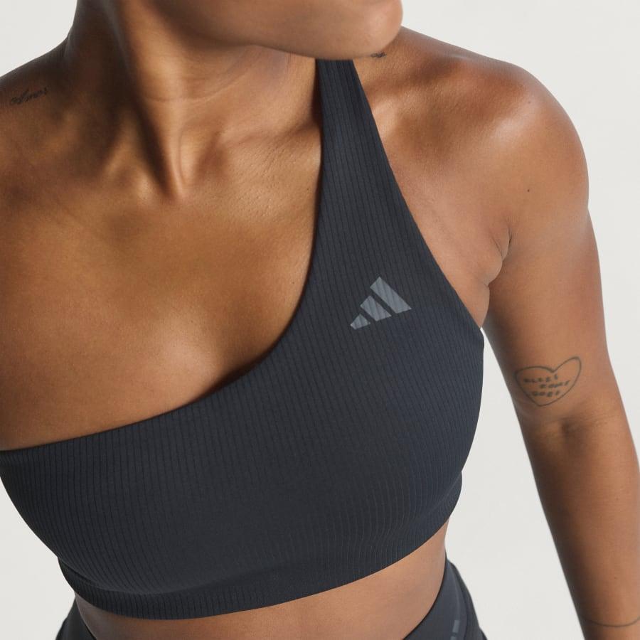 Light support","No closure","Shell: 79% polyester (100% recycled), 21% elastane; Lining: 88% polyester (100% recycled), 12% elastane; Bra pad - Outer: 100% polyester (100% recycled); Middle: 100% polyurethane; Inner: 100% polyester (100% recycled)","Fully lined","One shoulder","ADIMOVE technology","Removable padding","Sweat-wicking and quick drying"