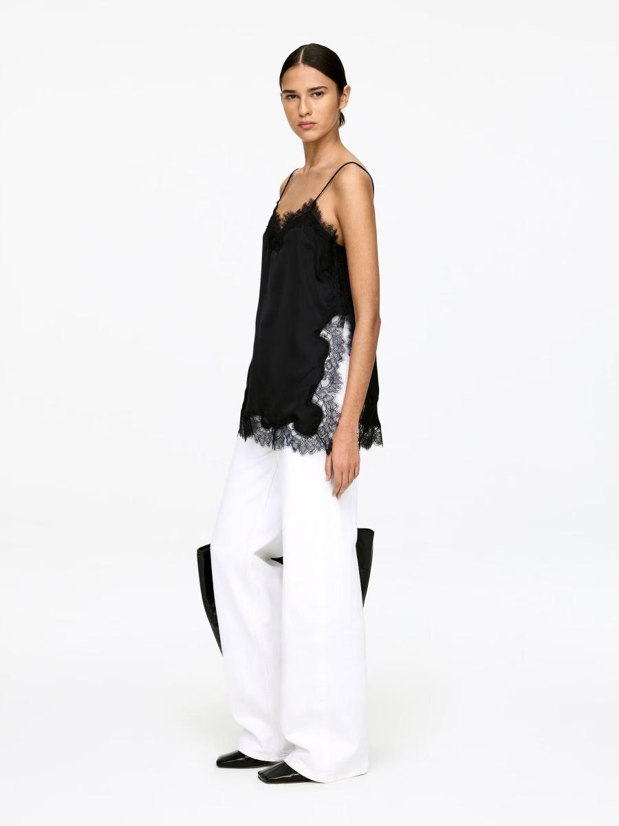 Strap top crafted from satin woven in cellulose acetate. Features delicate lace detailing and high side slits. Regular fit.ARKET/