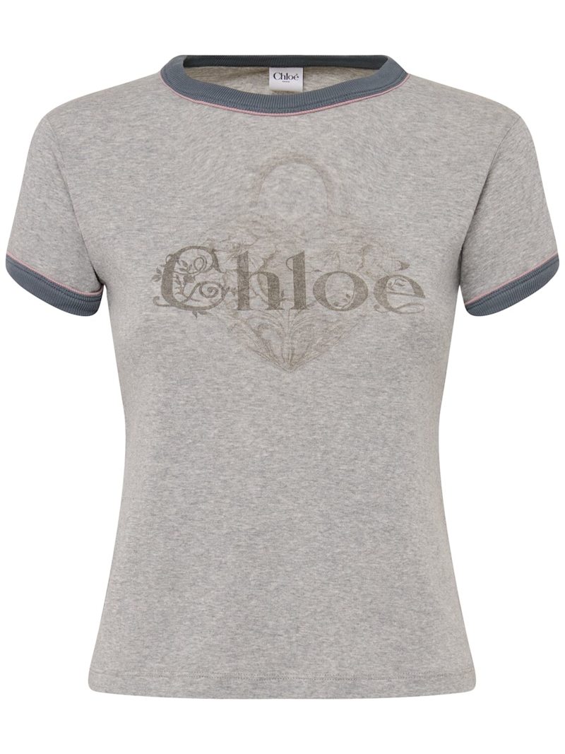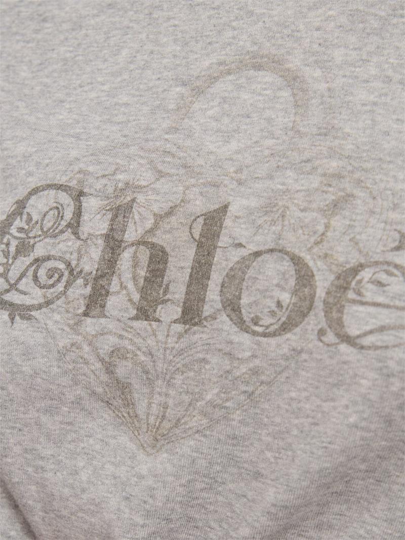 Logo印花棉质平纹针织T恤 - 灰色 - 女士 - Chloé - 圆领设计.