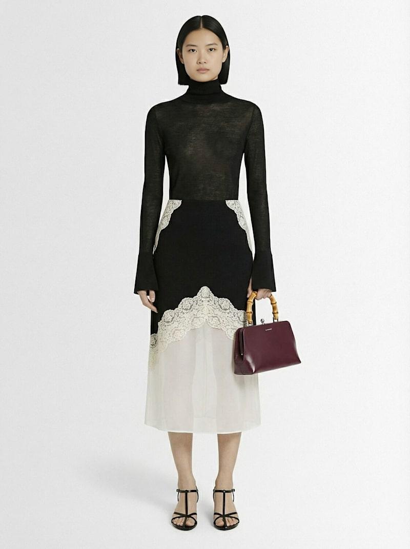 蕾丝装饰羊毛中长半身裙 - 黑色 - 女士 - Jil Sander - 蕾丝内嵌.