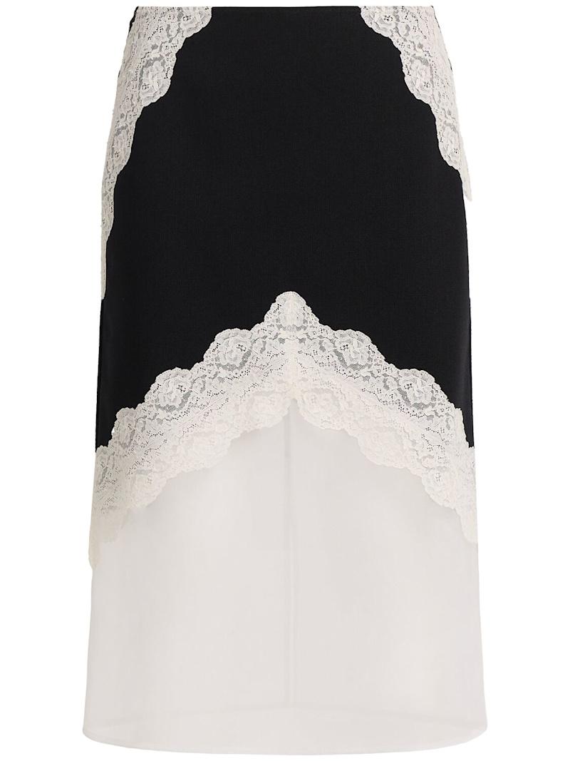 蕾丝装饰羊毛中长半身裙