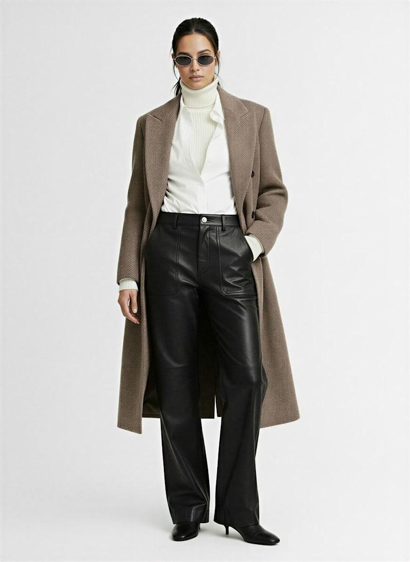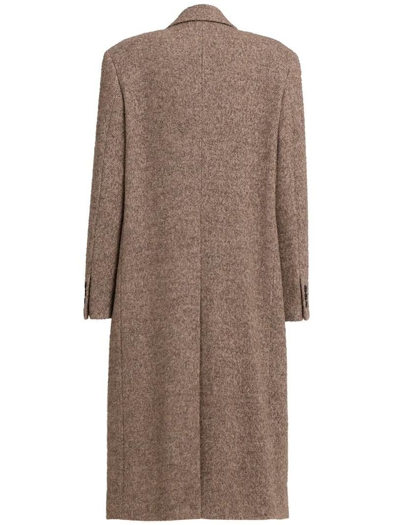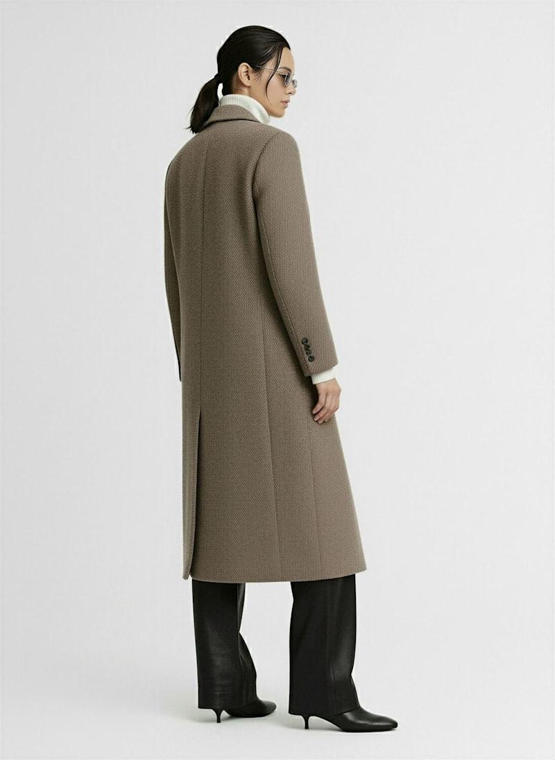 双排扣羊毛混纺大衣 - 米黄色 - 女士 - Tonywack - 正面纽扣开合.