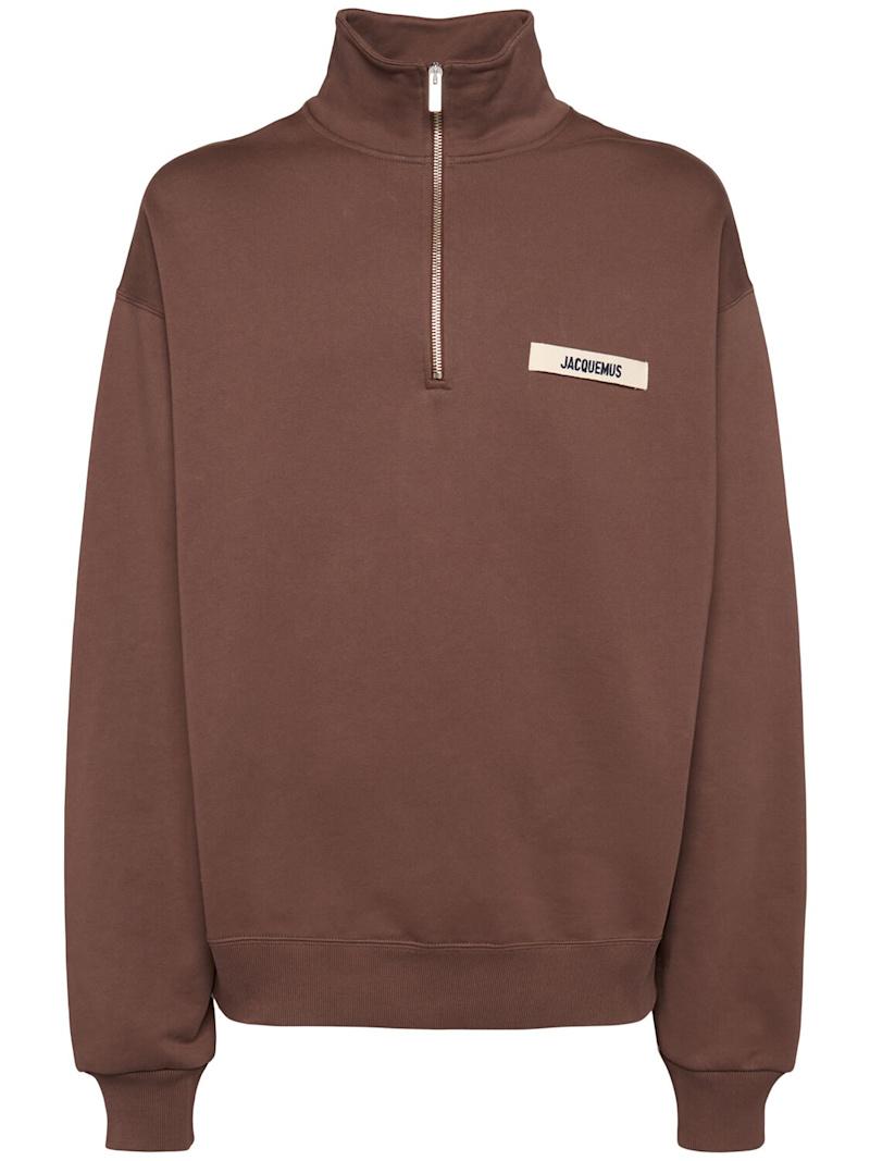 Le Camionneur Gros Grain卫衣 - 深棕色 - 男士 - Jacquemus - 正面半长拉链开合.