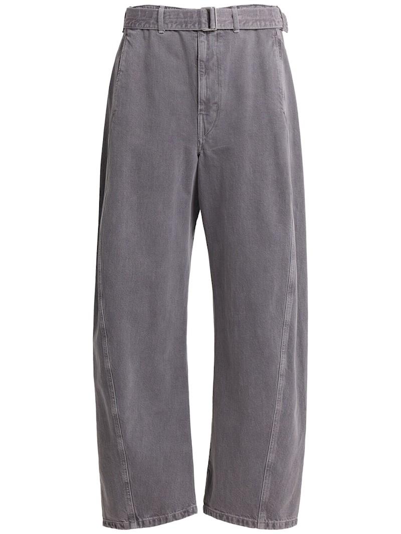 扭曲设计棉质裤子 - 混色 - 男士 - Lemaire - 正面纽扣和隐藏式拉链开合.