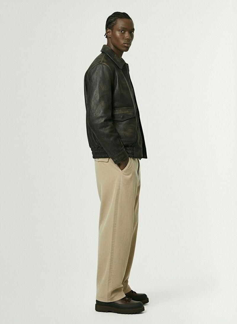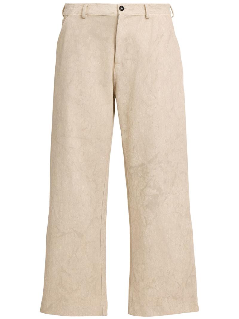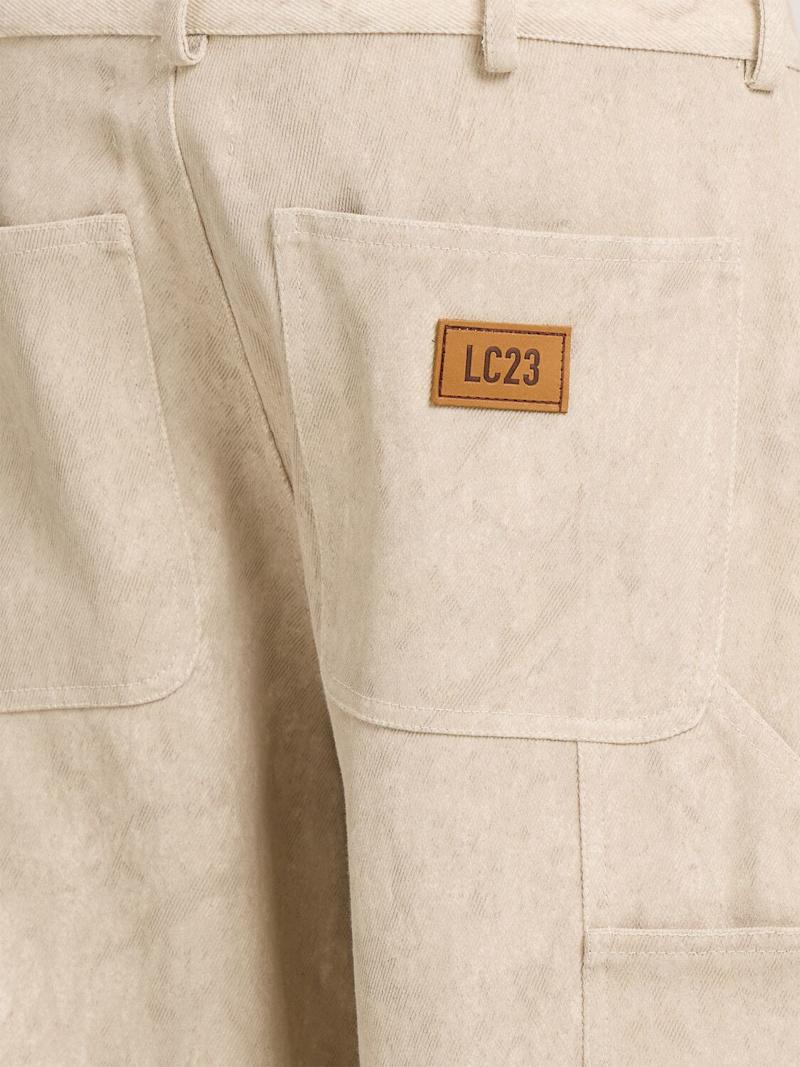Dirty棉质工装裤 - 奶油色 - 男士 - Lc23 - 正面纽扣和隐藏式拉链开合.