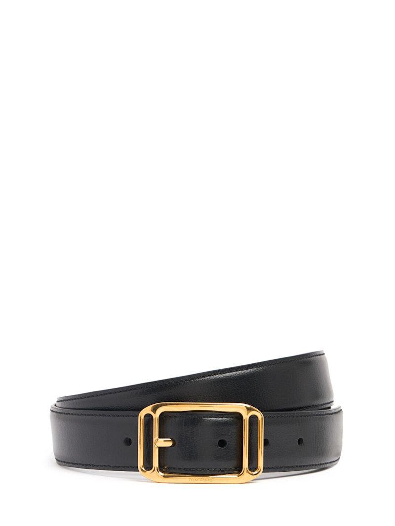 38毫米亮面皮革腰带 - 黑色 - 男士 - Tom Ford - 可调节搭扣开合
