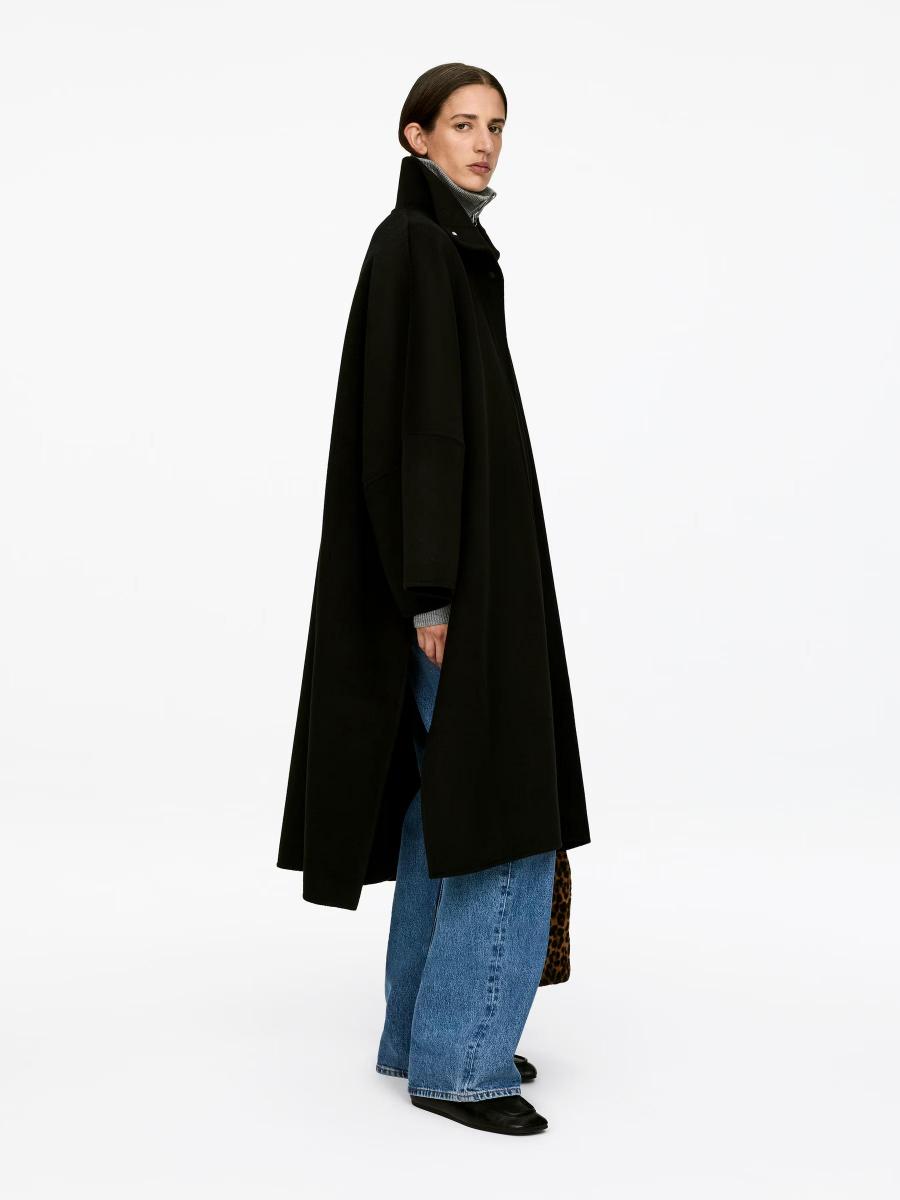 Cape crafted from a double-faced wool-blend fabric, featuring a snap-button front fastening and stand-up collar. Voluminous sleeves with snap-button cuffs.ARKET/Women's clothes/Women's coats and jackets/Women's coats