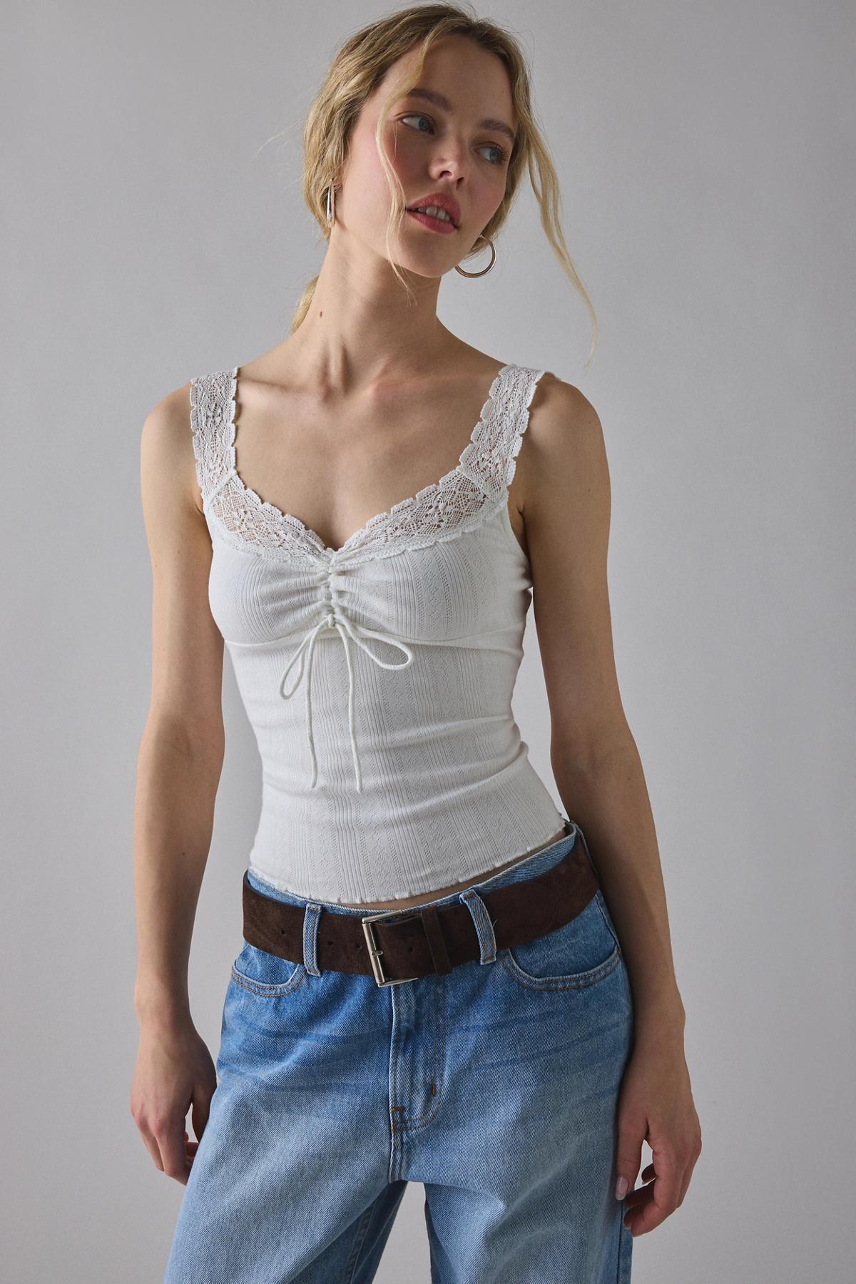 Kimchi Blue Callie Cinch-Front Lace Trim Tank Top