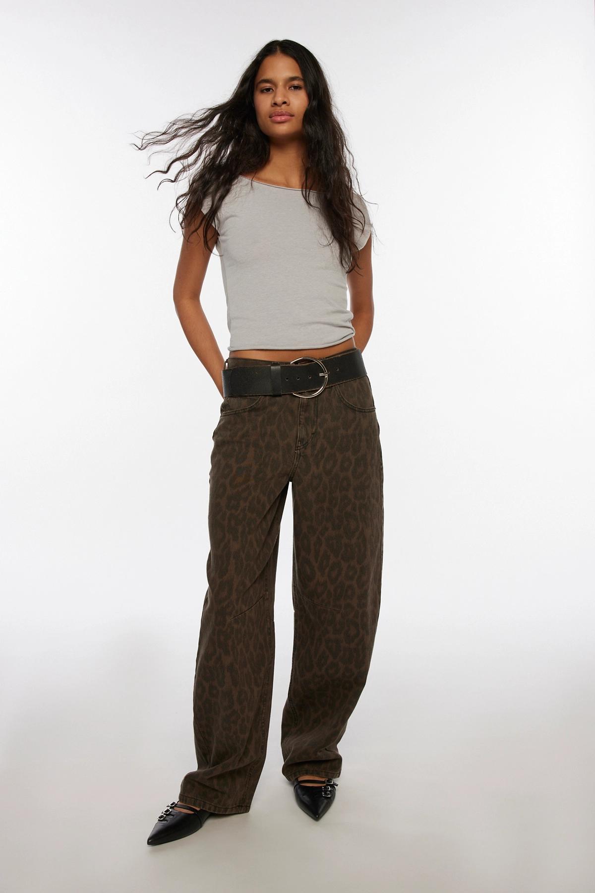 BDG Logan Printed Buckle Baggy Barrel Jean