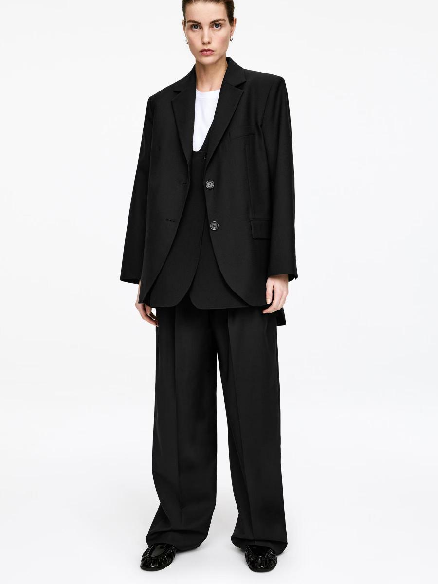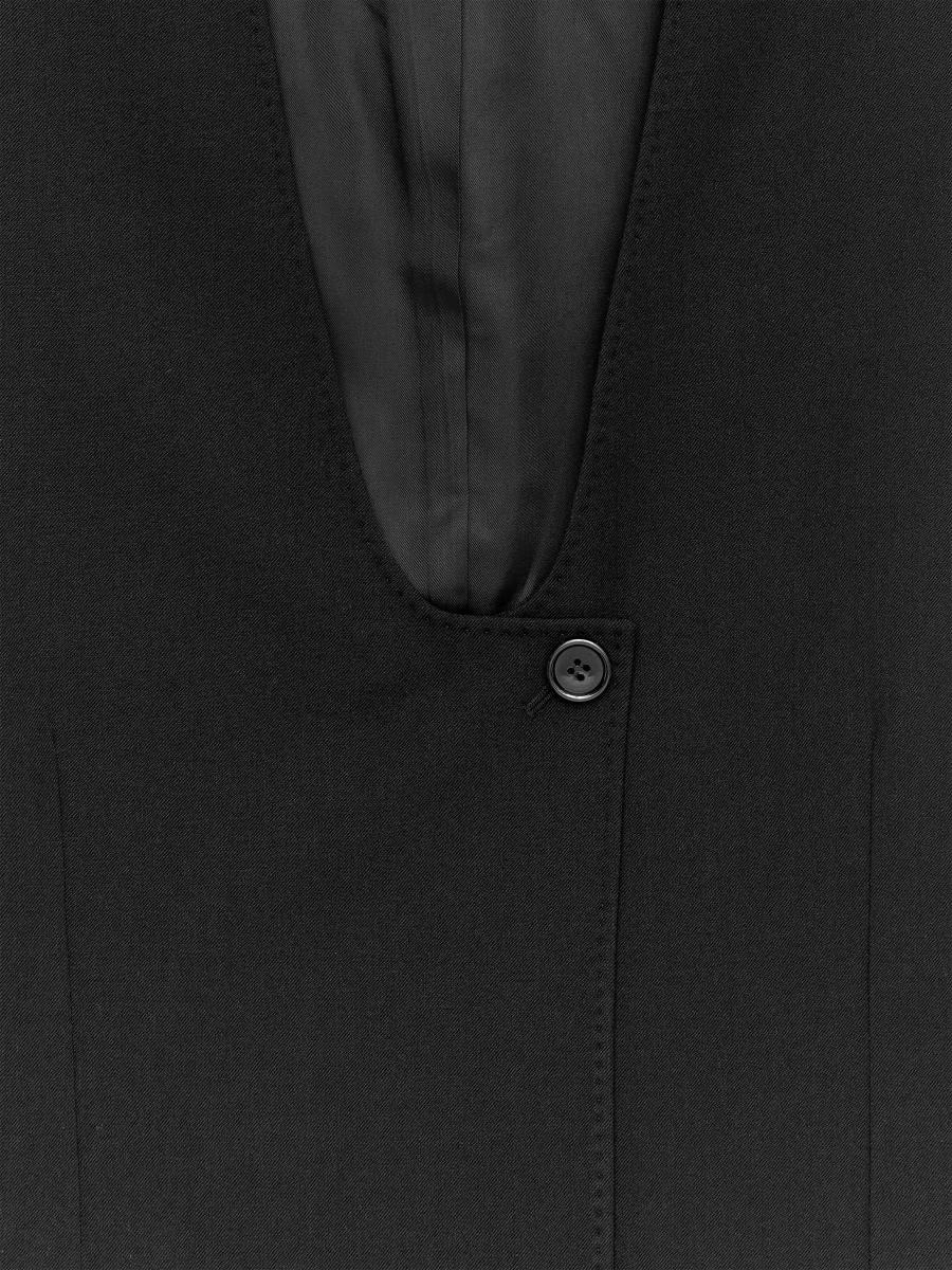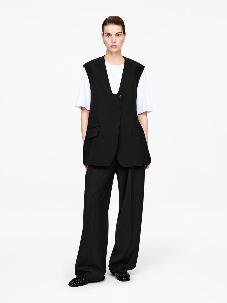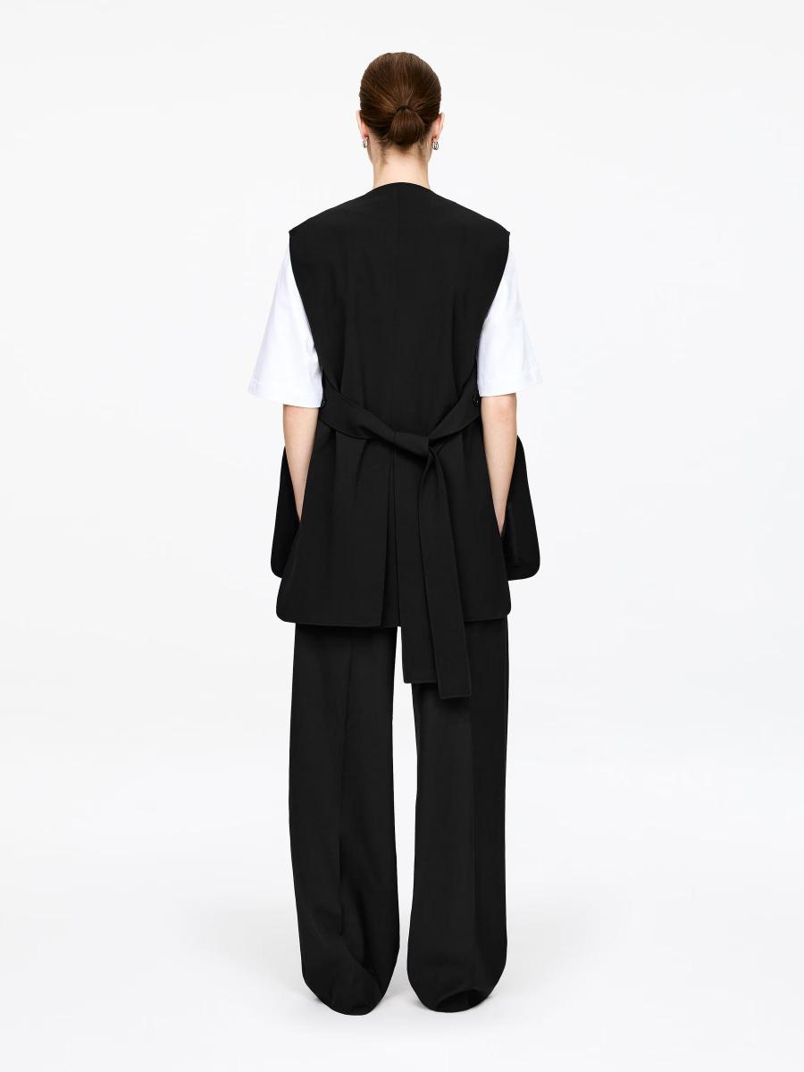 Designed for versatile styling, this tailored waistcoat is structured with subtle shoulder pads and a belted waist with button closure. Finished with double welt pockets with flaps and a clean button fastening at the centre front.ARKET/