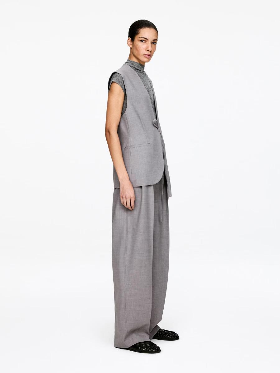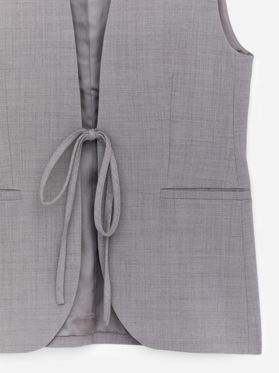 Tailored waistcoat with a clean, collarless design and front tie detailing. Cut with a low armhole, it features welt pockets and a discreet seam loop for belt styling.ARKET/Women's clothes/Women's tailoring/Women's blazers