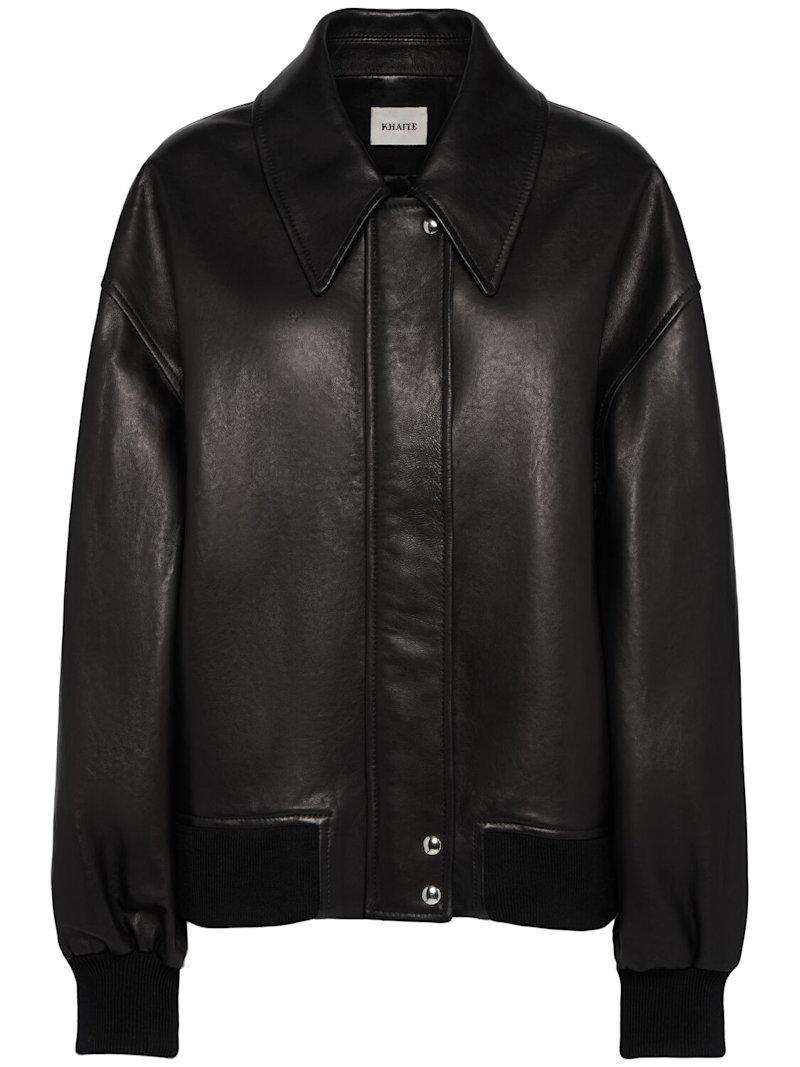 Shelman皮革夹克 - 黑色 - 女士 - Khaite - 正面按扣和隐形拉链开合.