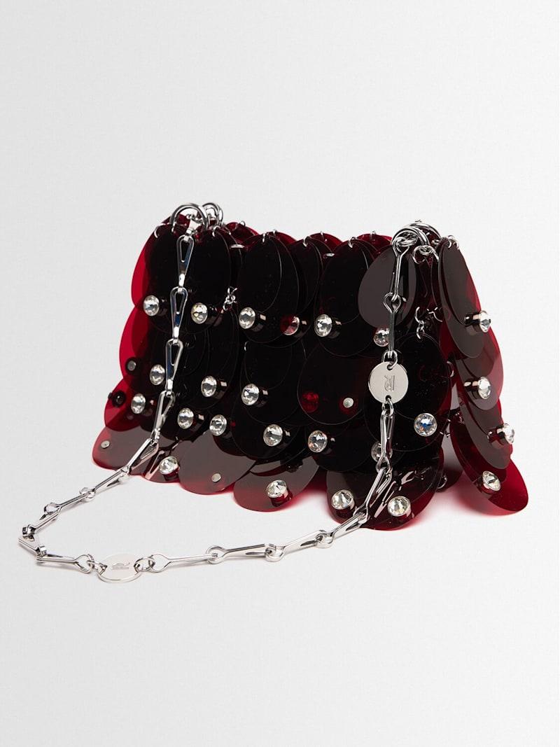 Sac à main亮片单肩包 - 银色/酒红色 - 女士 - Rabanne - 金属链条肩带