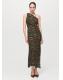 Diseño midi. Diseño entallado. Estampado de cebra. Cuello asimétrico. Tirante fruncido. Fruncidos laterales. Cierre de cremallera lateral