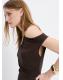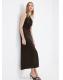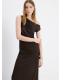 Tejido de punto fino en viscosa. Diseño recto. Diseño midi. Cuello asimétrico. Mangas asimétricas. Detalle drapeado. Sin cierre