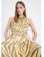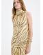 Diseño recto. Diseño largo. Adorno de fular en el cuello. Estampado cebra. Sin mangas. Cierre de cremallera en la parte posterior. Forro interior