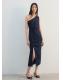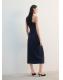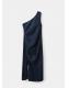 Tejido de algodón estilo tejano vaquero. Diseño midi. Diseño entallado. Cuello asimétrico. Sin mangas. Panel fruncido. Abertura lateral en el bajo. Cierre de cremallera lateral