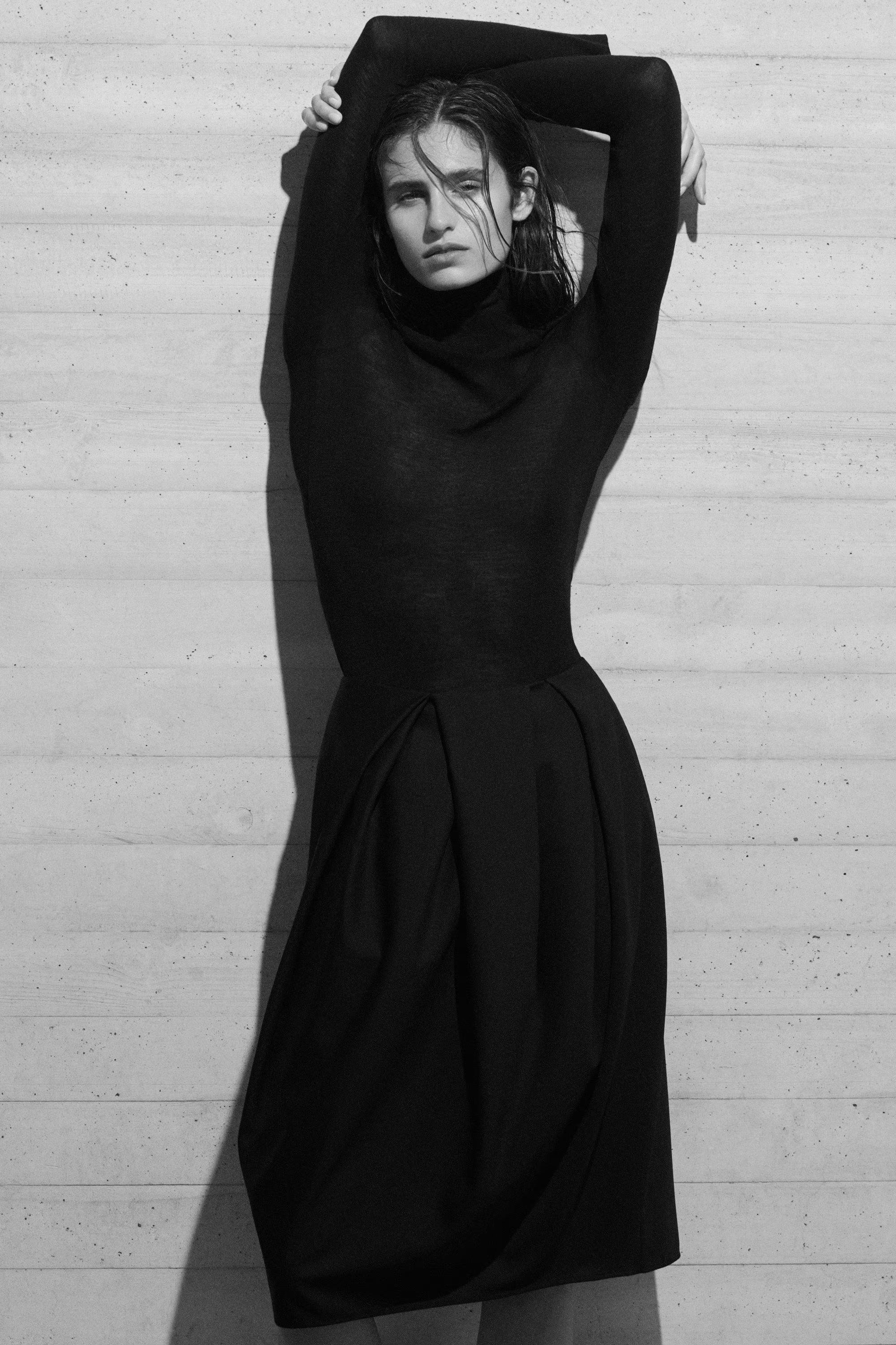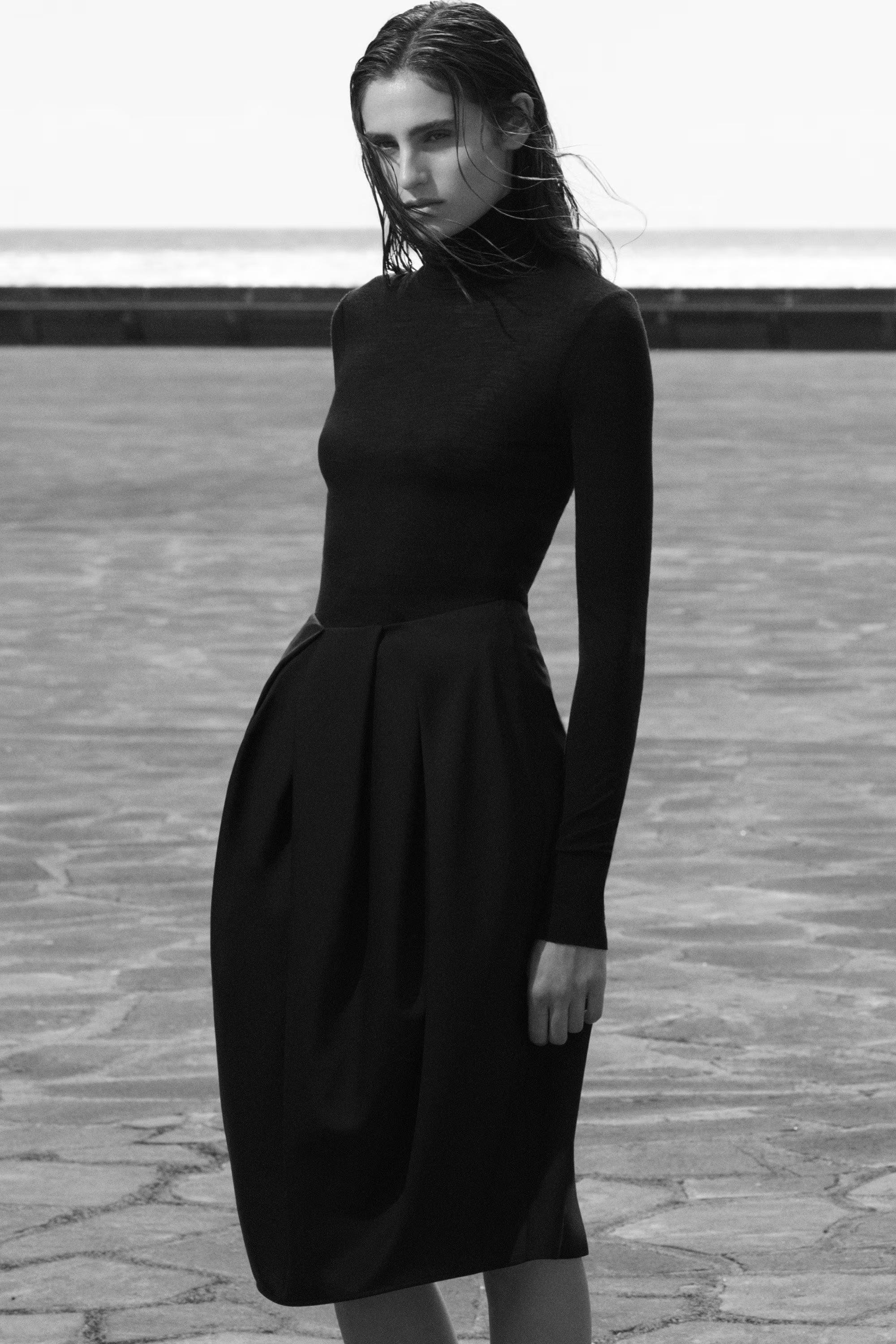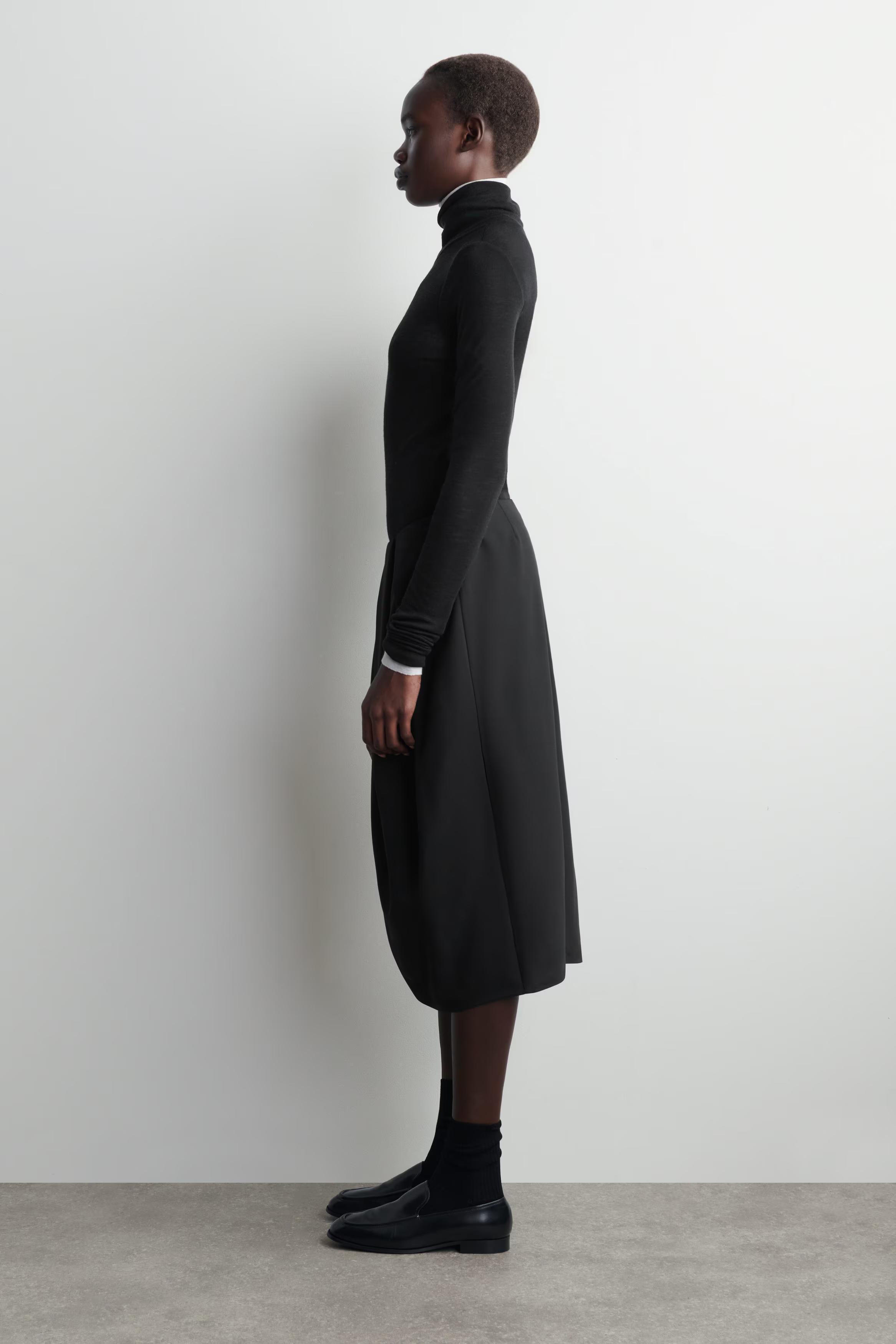 Draped on the stand at our London atelier, this striking midi skirt is cut in a curved tulip silhouette and crafted from tactile wool that holds its shape. Irregular pleats define the waist, creating a modern quality.\u0026nbsp;Regular fitZip closureMachine wash\u0026nbsp;Back length of size EU 36 is 67.4cm / Model wears a size EU 36