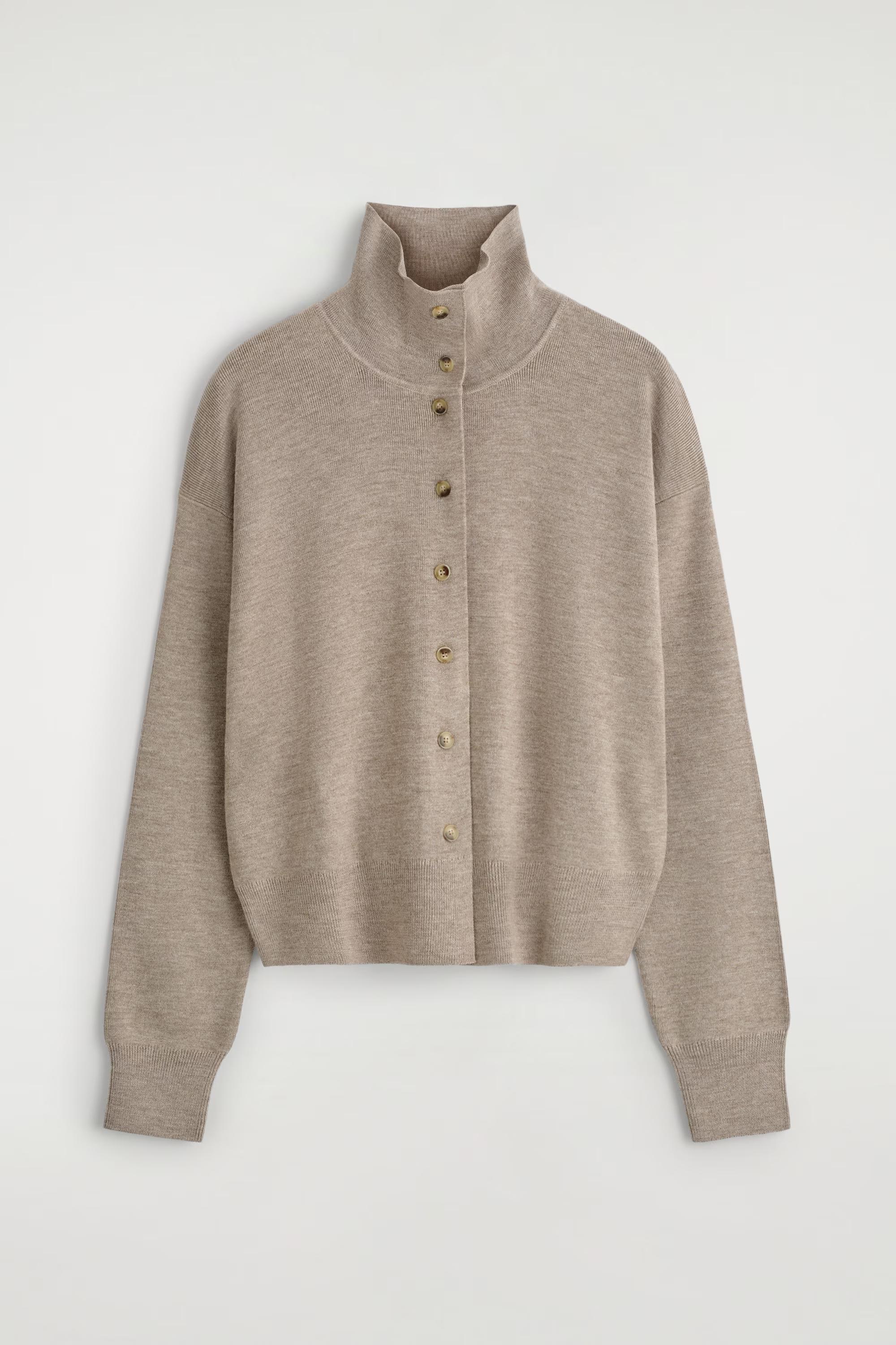 MERINO WOOL FUNNEL-NECK CARDIGAN