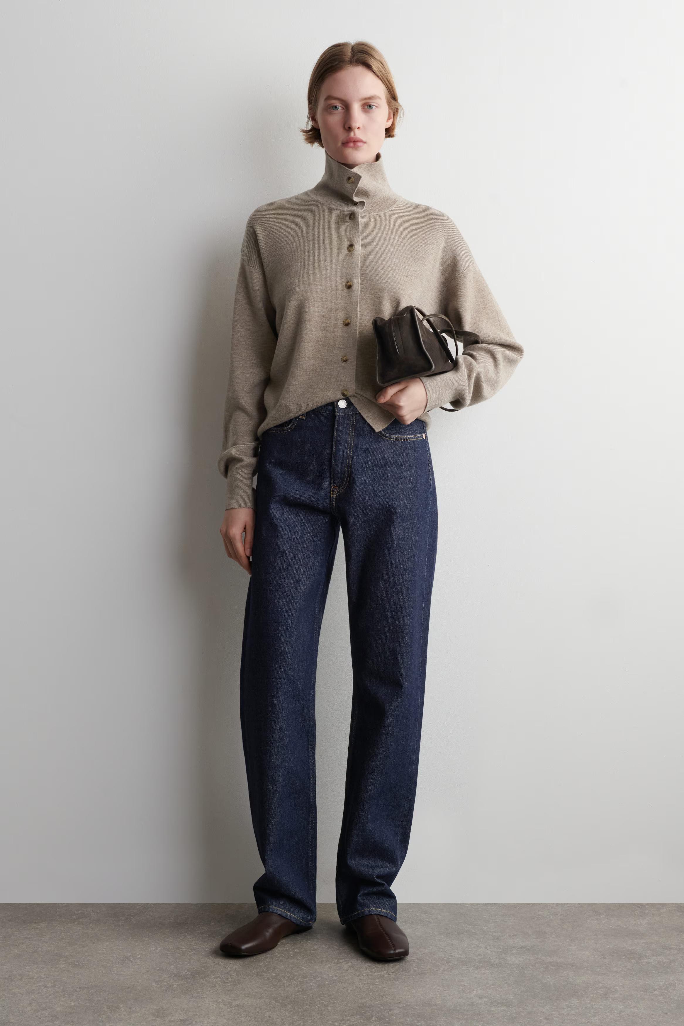 This season, the classic cardigan is renewed with a refined sensibility. This piece is knitted from ultra-soft, fine merino wool and designed with a versatile neckline \u0026ndash; wear it as a funnel neck or effortlessly unbuttoned. Style it as a coord with the matching trousers.\u0026nbsp;Regular fitButton closureMachine wash\u0026nbsp;Back length of size S is 52cm / Model wears a size S
