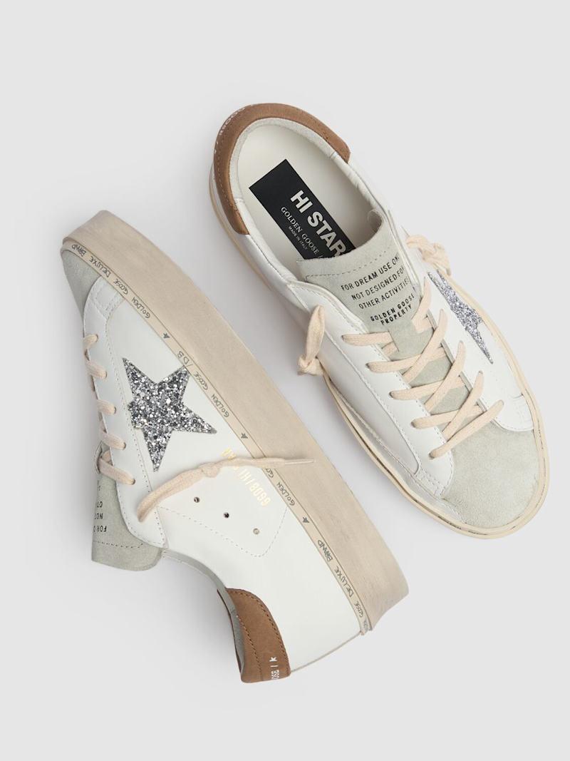 20毫米Hi Star皮革运动鞋 - 白色/灰褐色 - 女士 - Golden Goose - 皮革鞋面.