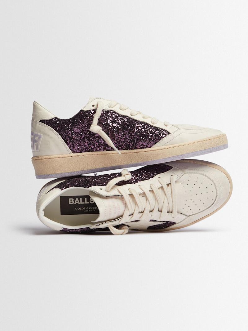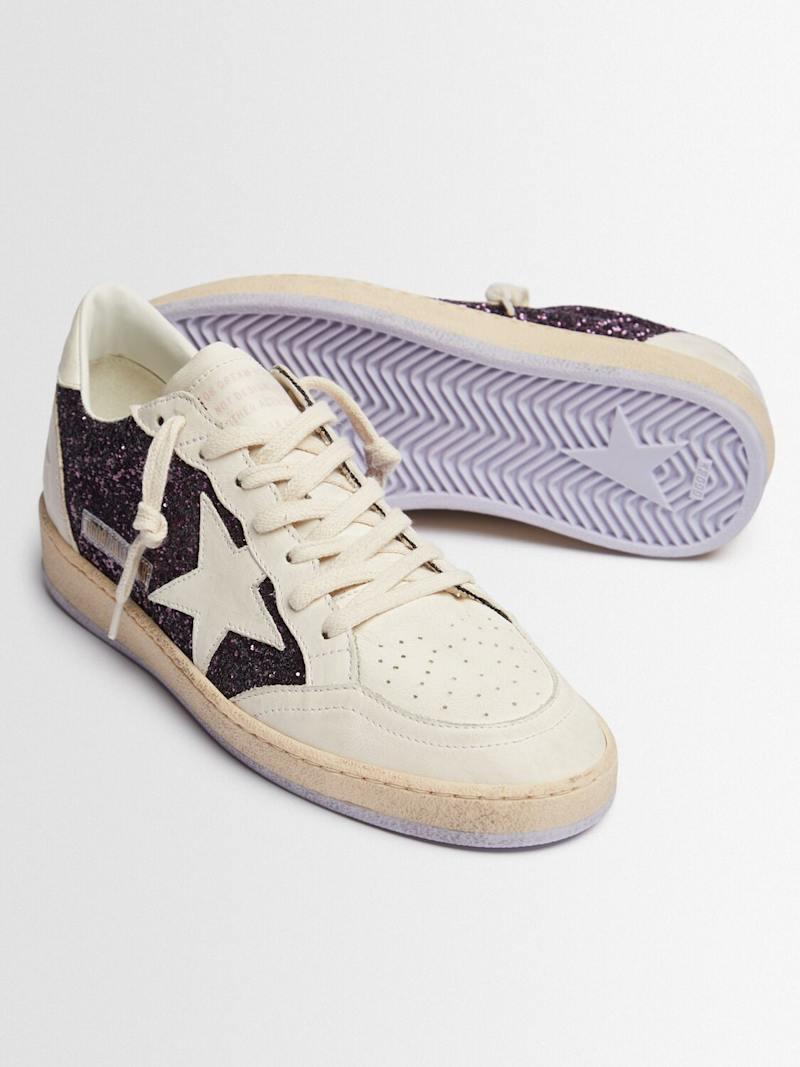 Ballstar亮粉&皮革运动鞋 - 紫色/白色 - 女士 - Golden Goose - 皮革鞋面.