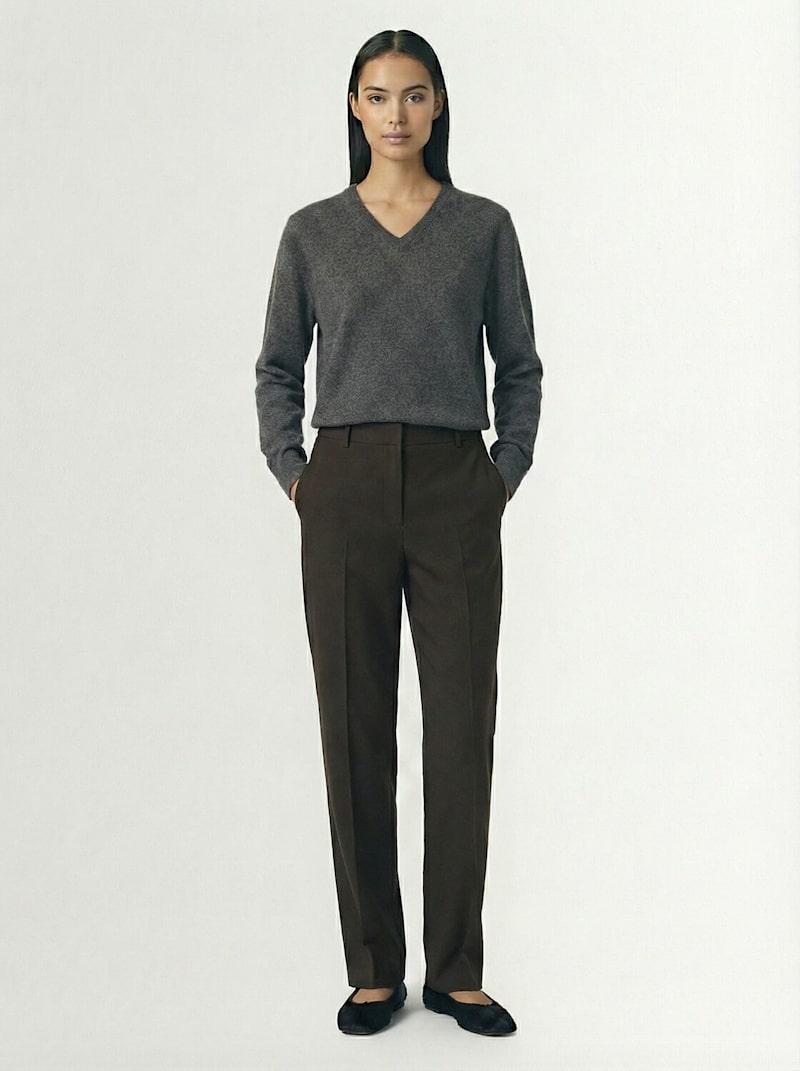 Mikkela羊毛混纺裤子 - 深棕色 - 女士 - The Row - 隐藏式正面粘扣开合.