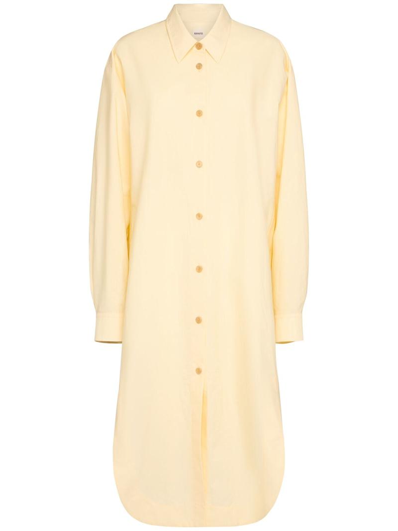 Gloria棉质衬衫连衣裙 - 浅黄色 - 女士 - Khaite - 正面纽扣开合.