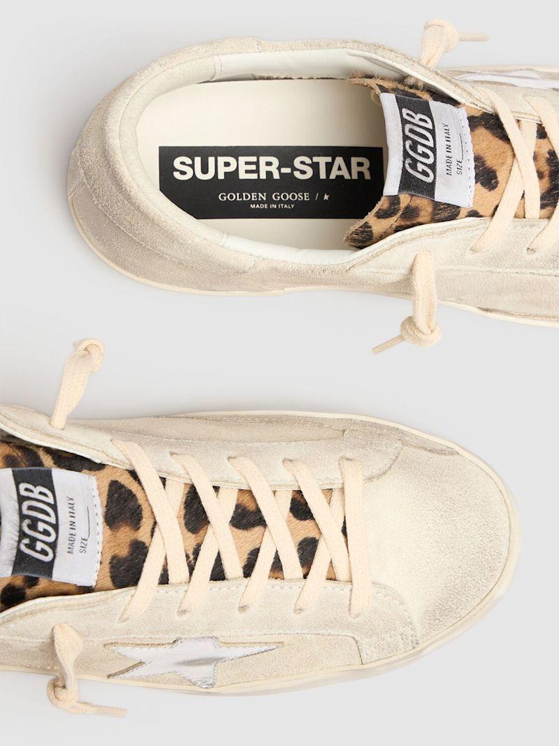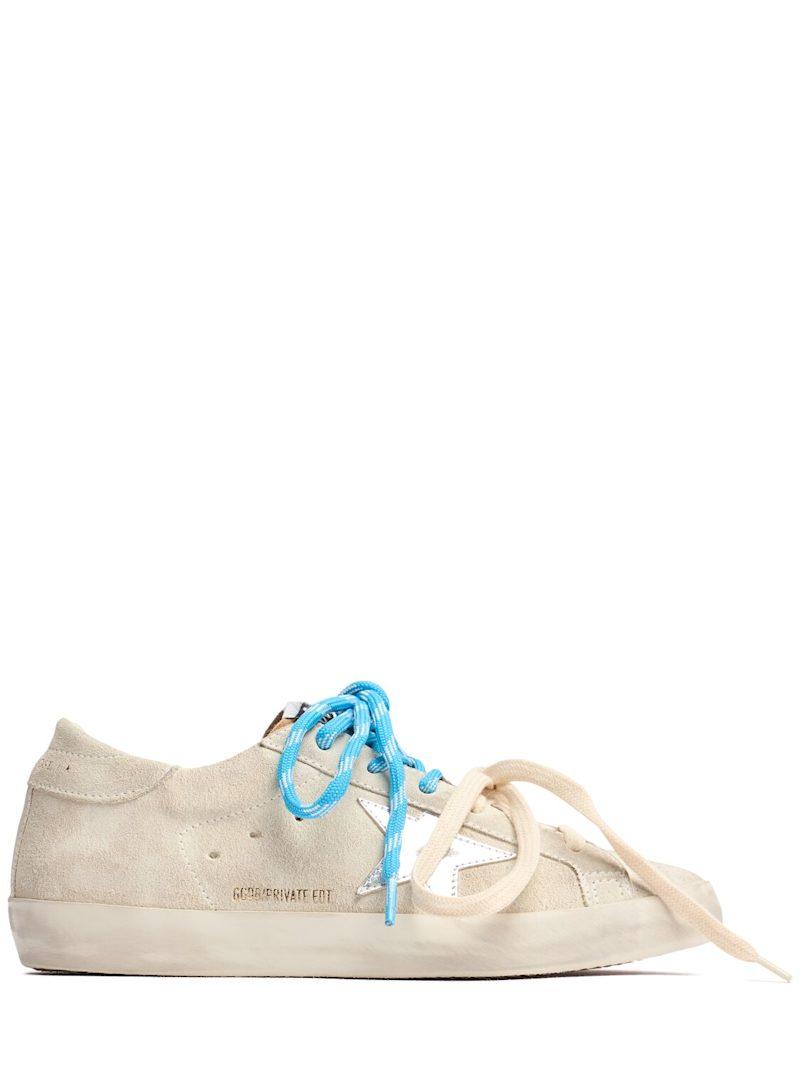 LVR独家Super-Star麂皮运动鞋 - 米黄色/银色 - 男士 - Golden Goose - 正面系带开合.