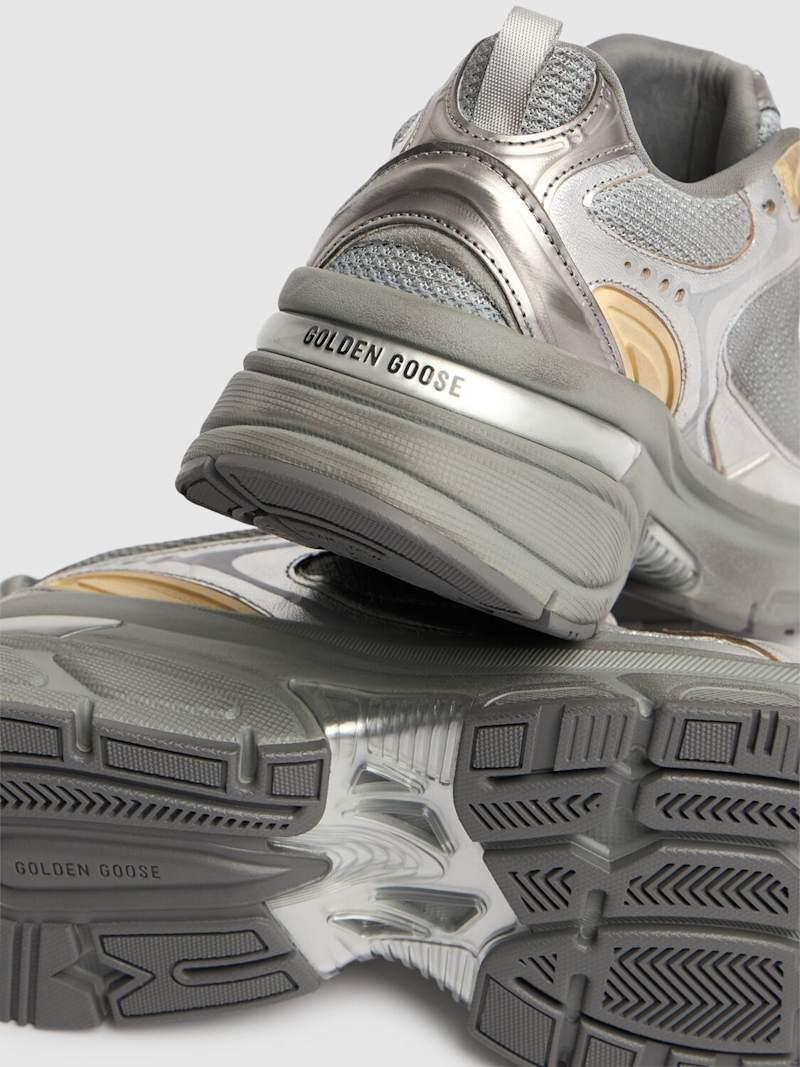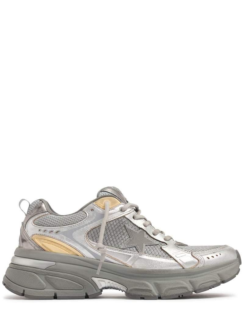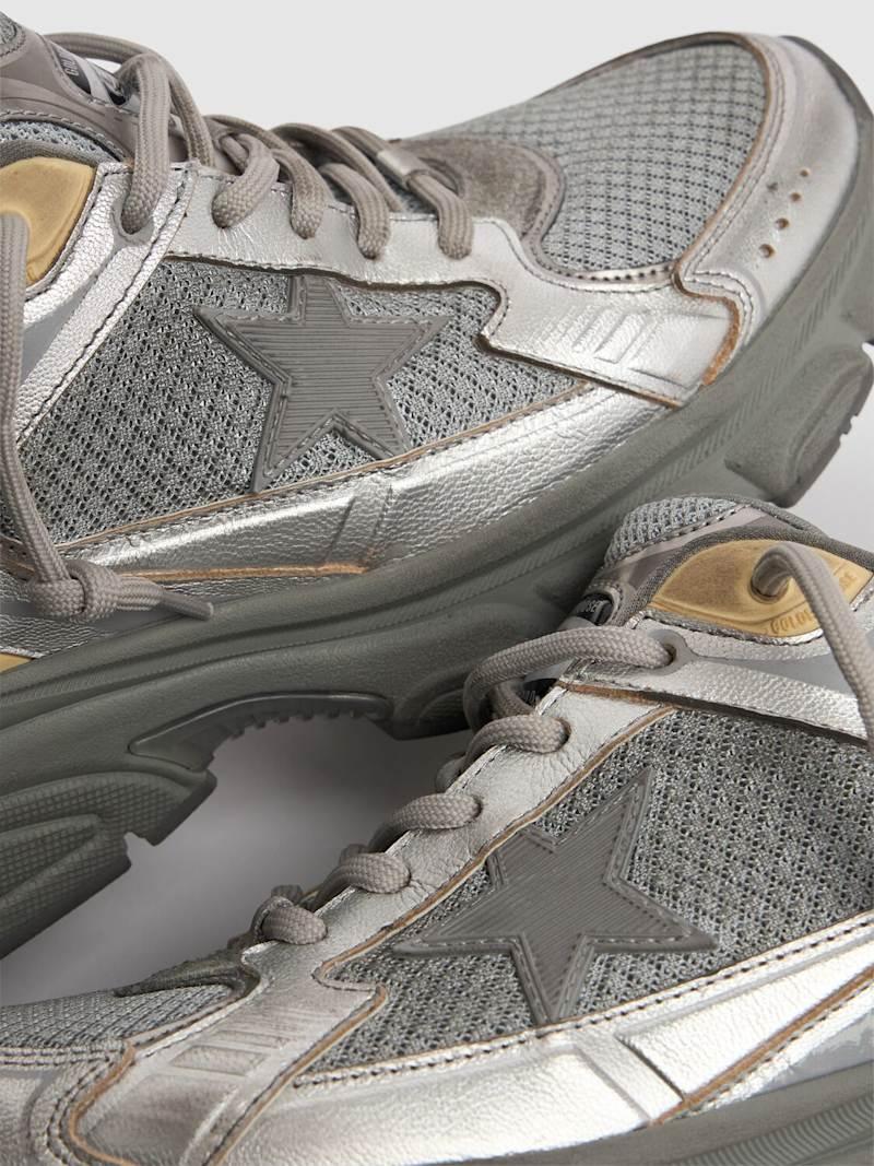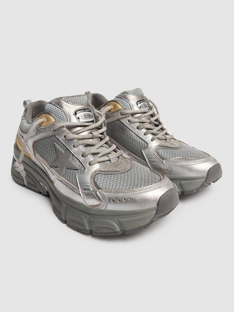 Lightstar层压亮面皮革运动鞋 - 银色/金色 - 男士 - Golden Goose - 正面系带开合.
