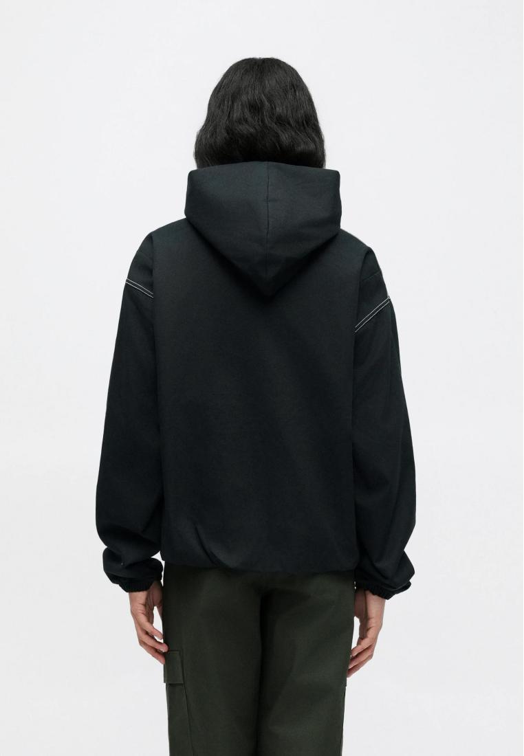 small label flag at chest heightCollar: HoodFastening: ZipPockets: Separated hoodie pocketPattern: PlainDetails: Elasticated waist