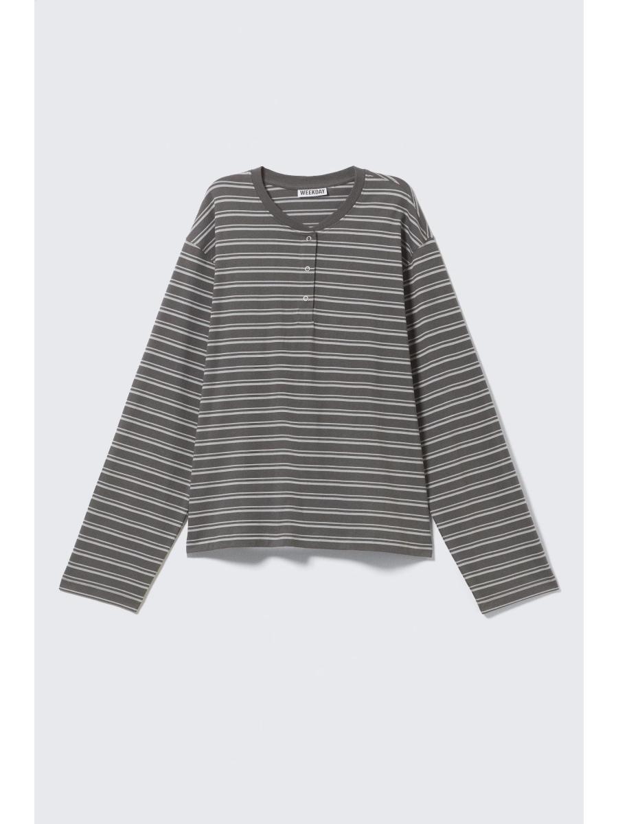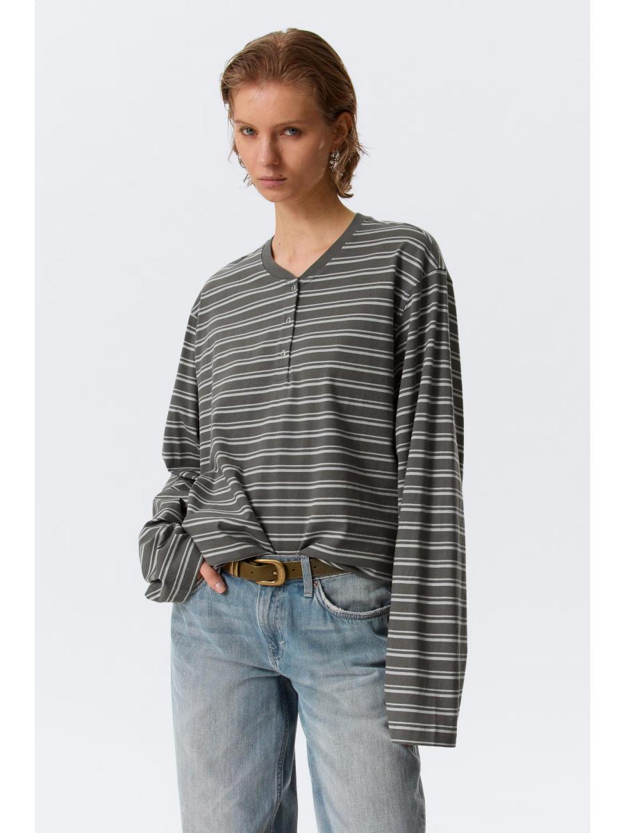 Boxy Long-Sleeved Henley T-shirt
