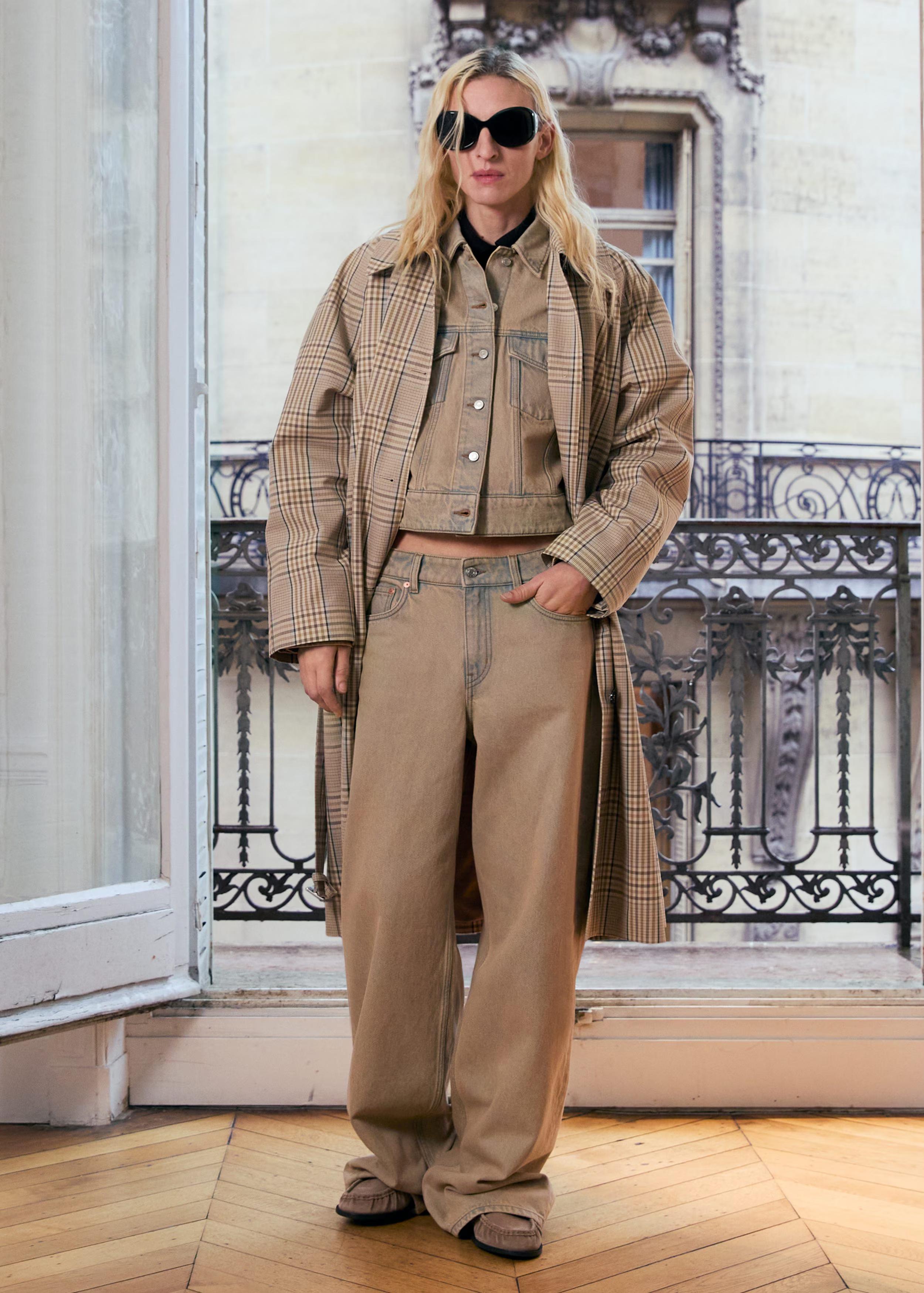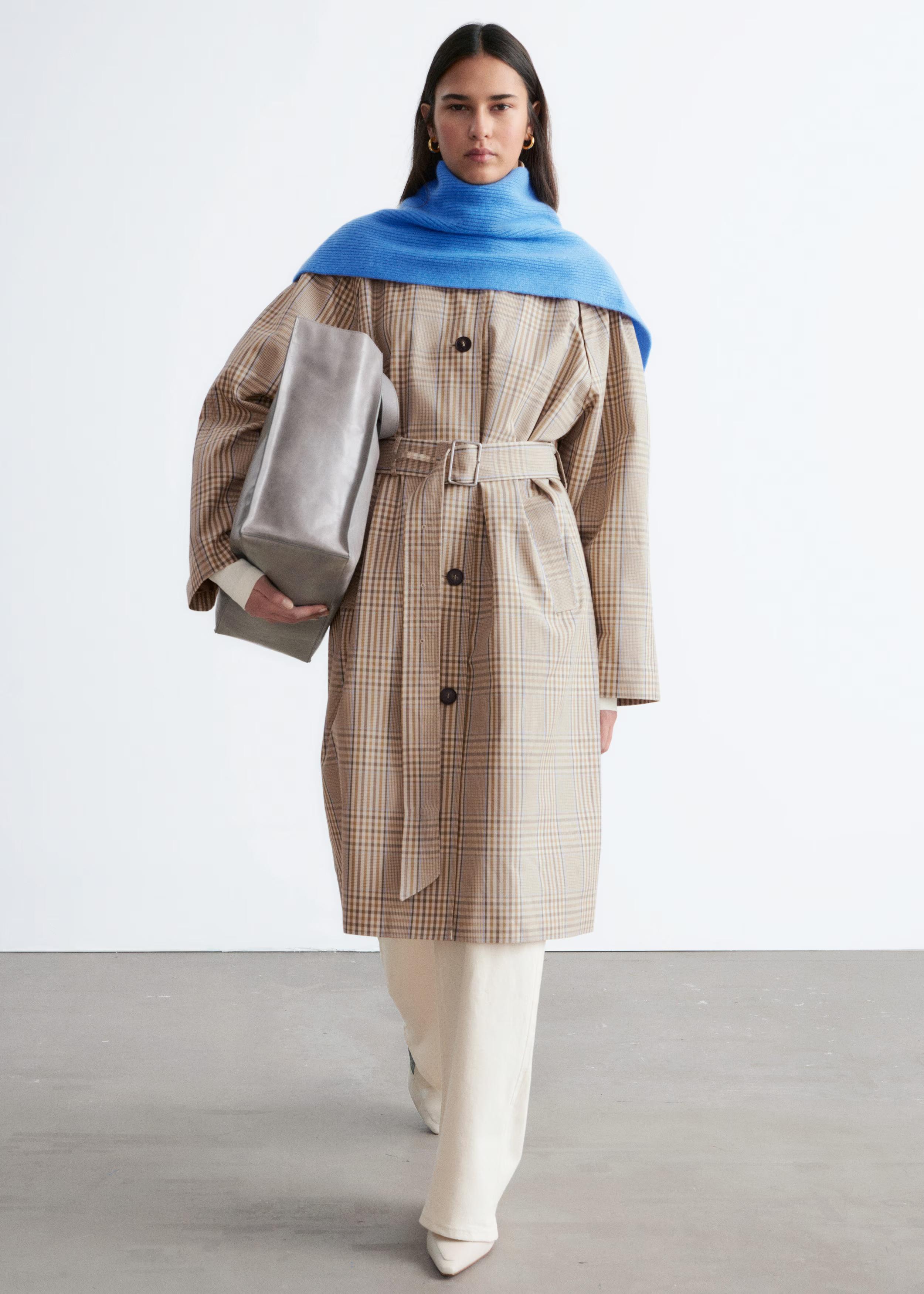 Checked Buckle-Belt Trench Coat