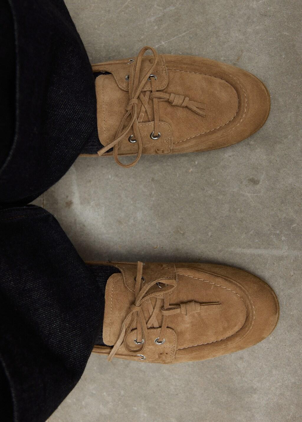 Piel caprino. Piel de ante. Estilo náutico. Flat. Cierre de cordones. Forro interior
