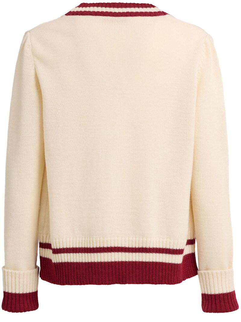 Double heart wool cardigan - 奶油色 - 男士 - Fiorucci - Front button closure.