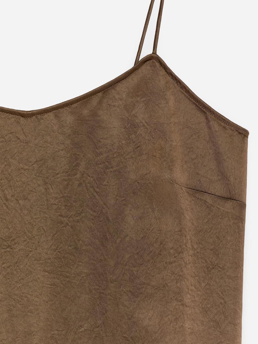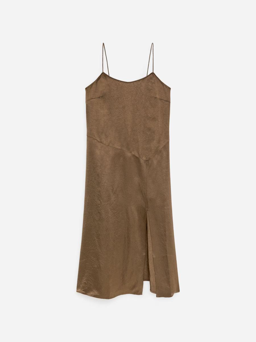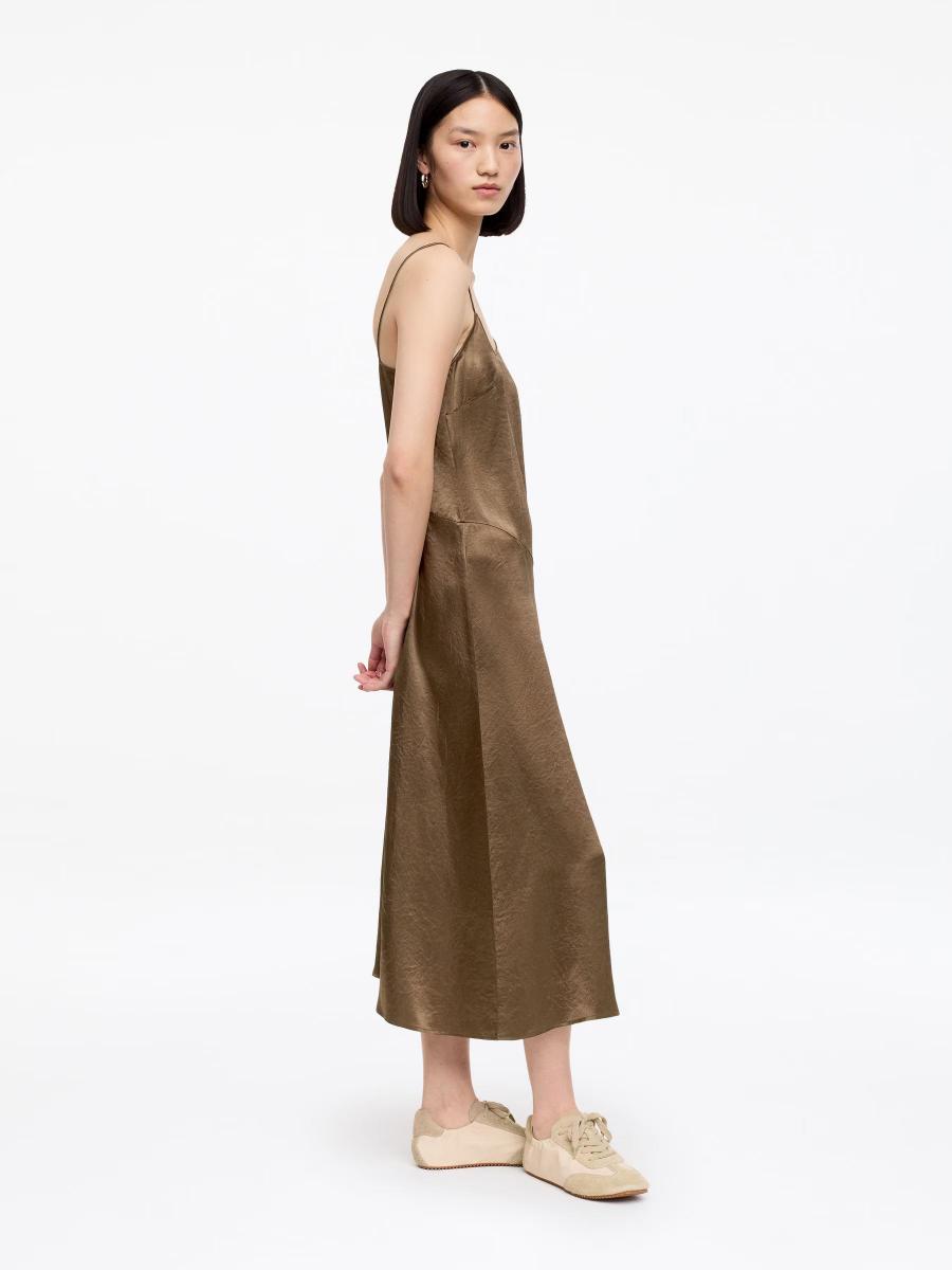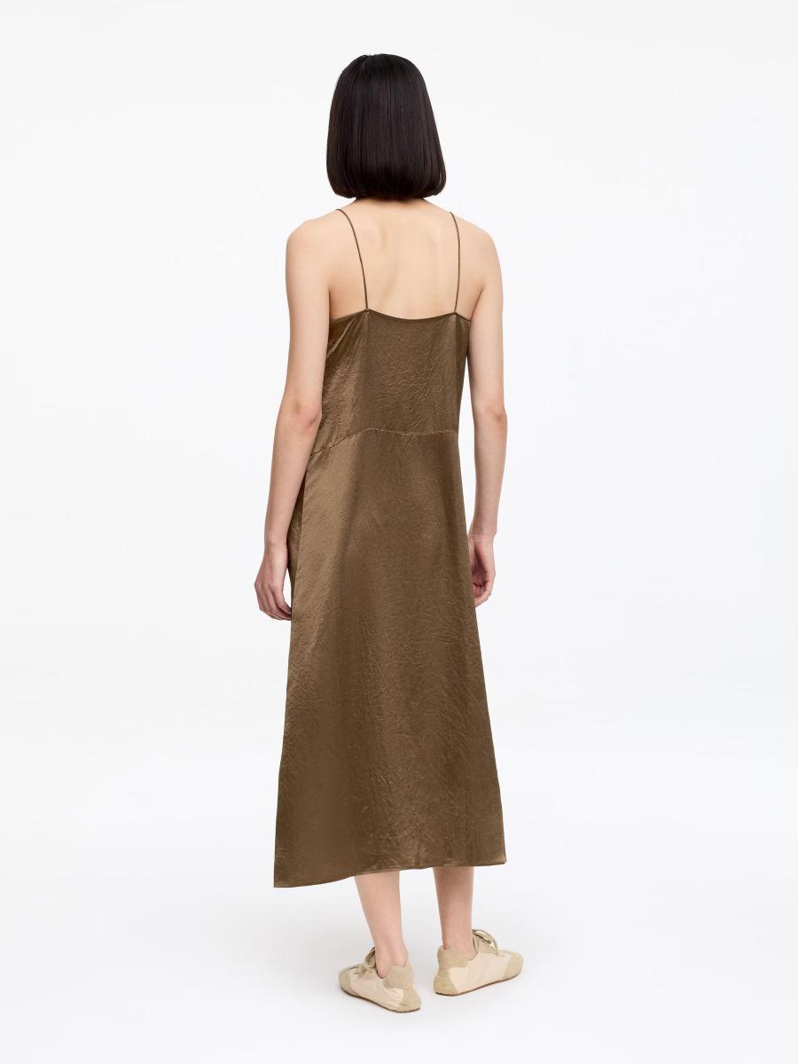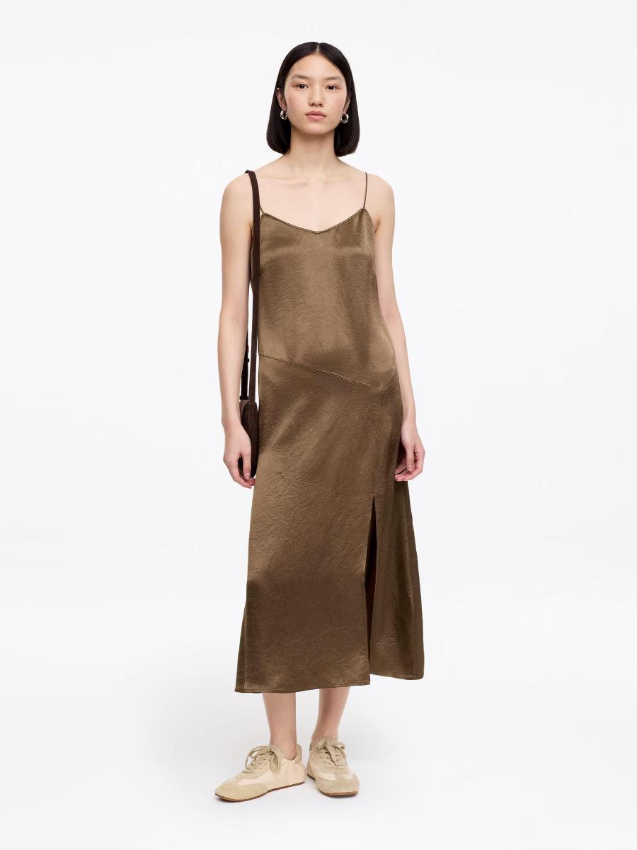 A satin slip dress featuring fine rouleau straps, an asymmetrical waist seam, shaping bust darts, and a subtle front slit.ARKET/Women's clothes/Women's dresses