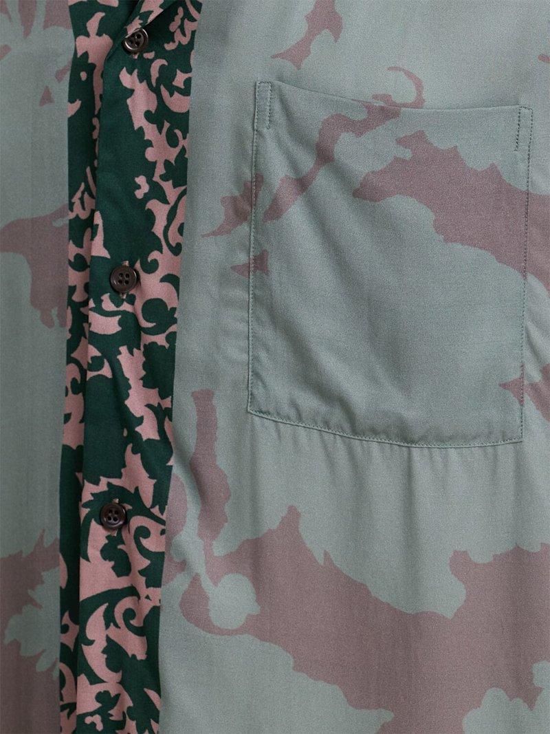 Carltone短袖铜氨纤维衬衫 - 石油蓝 - 男士 - Dries Van Noten - 正面纽扣开合.
