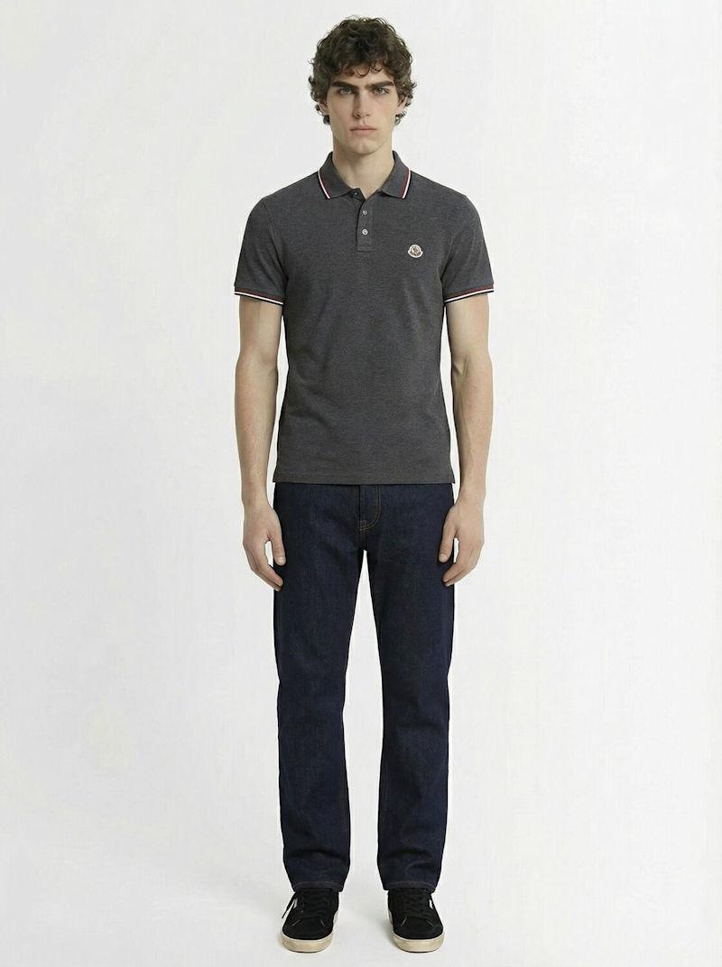 Tricolour-Trimmed cotton polo shirt - 深灰色 - 男士 - Moncler - Crafted from cotton piquet.
