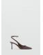 Efecto charol. Con punta. Tacón de aguja. Cierre de tira tobillera con hebilla metálica. El tacón mide 8,5 cm