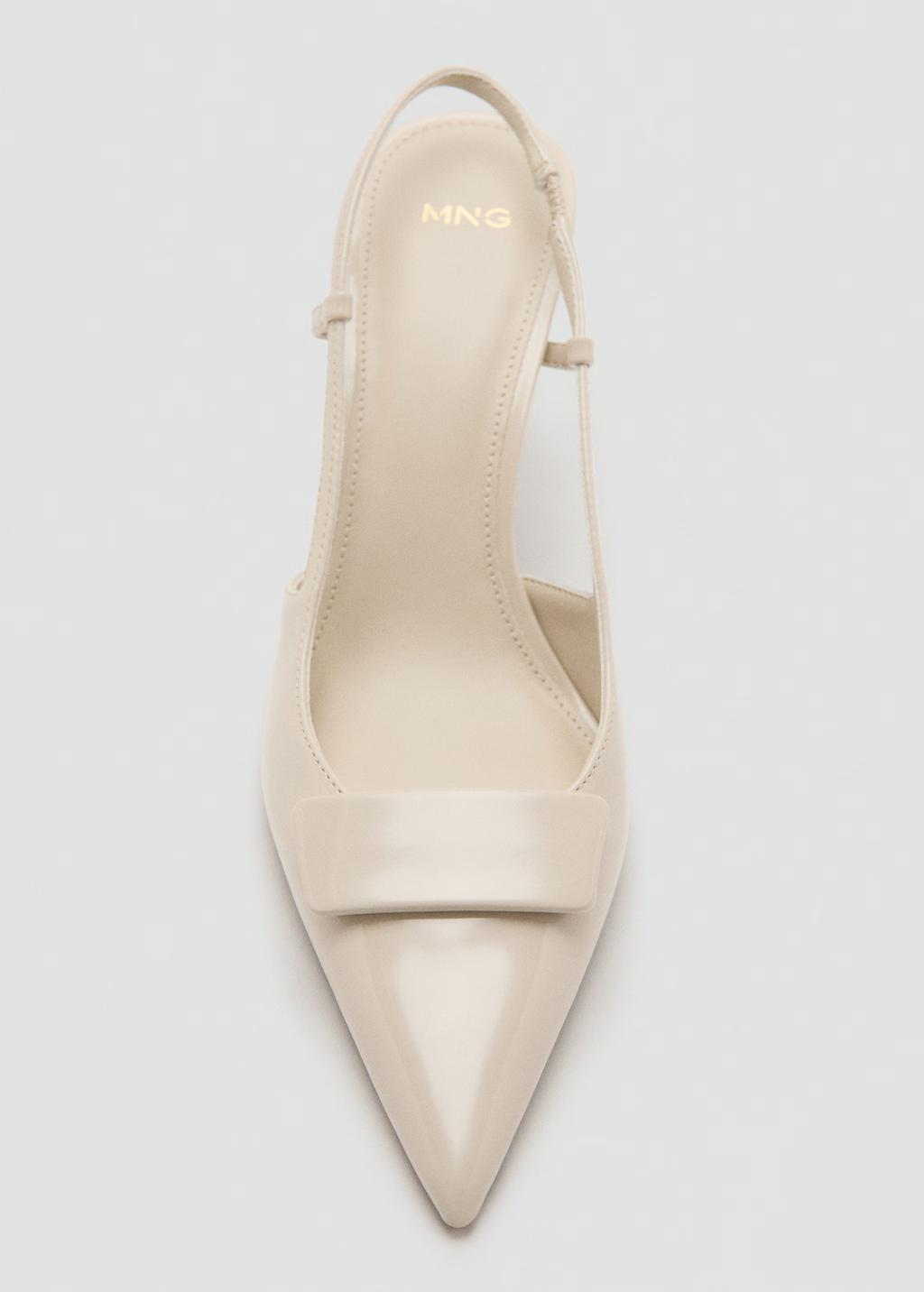 Efecto charol. Diseño destalonado. Con punta. Pieza rectangular. Tacón embudo. Sin cierre. El tacón mide 8 cm