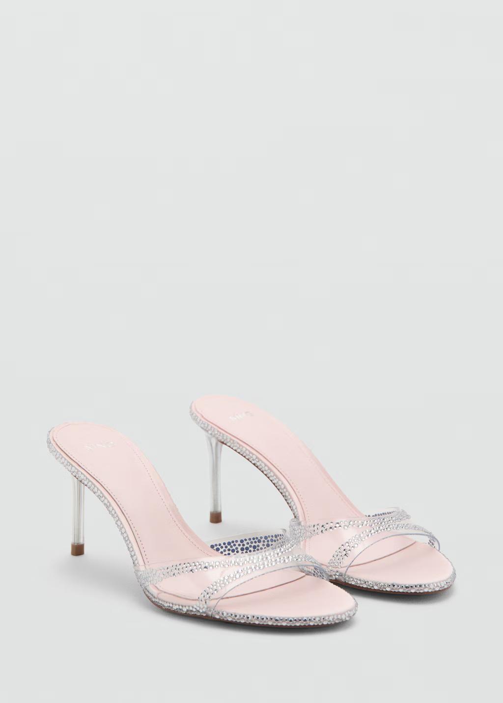 Diseño de strass. Diseño de tiras. Diseño destalonado. Puntera abierta. Tacón de aguja. El tacón mide 10 cm. Sin cierre