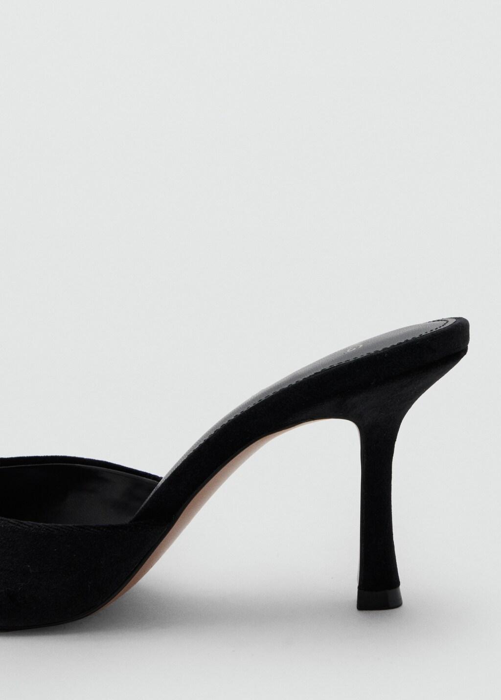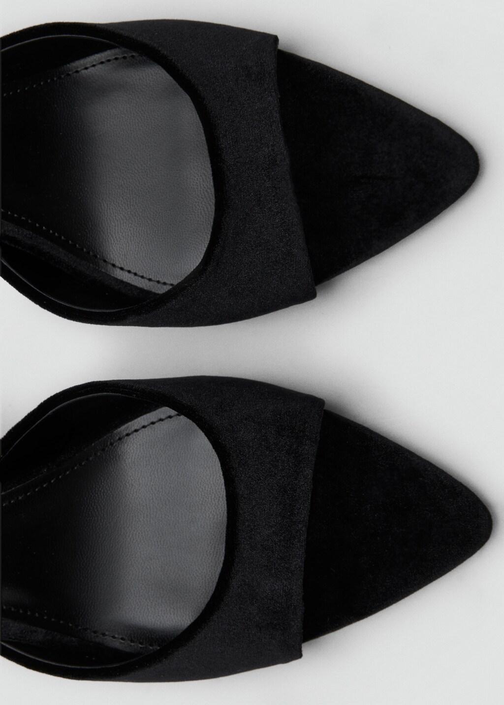 Tejido de terciopelo. Diseño destalonado. Diseño de tira. Puntera abierta. Tacón de aguja. Sin cierre. El tacón mide 8 cm