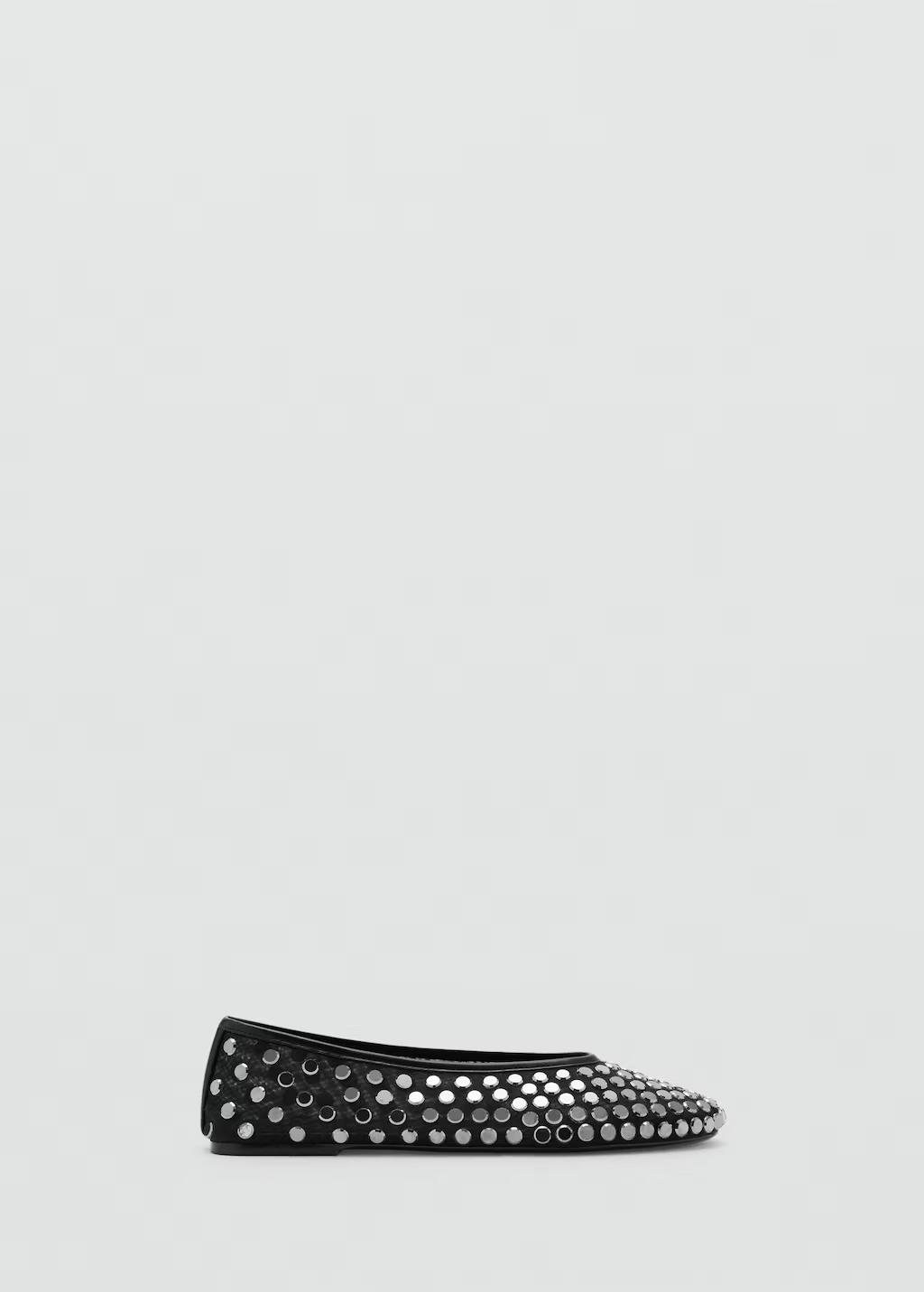 Tejido mesh. Flat. Punta redonda. Adorno de tachuelas. Sin cierre