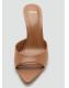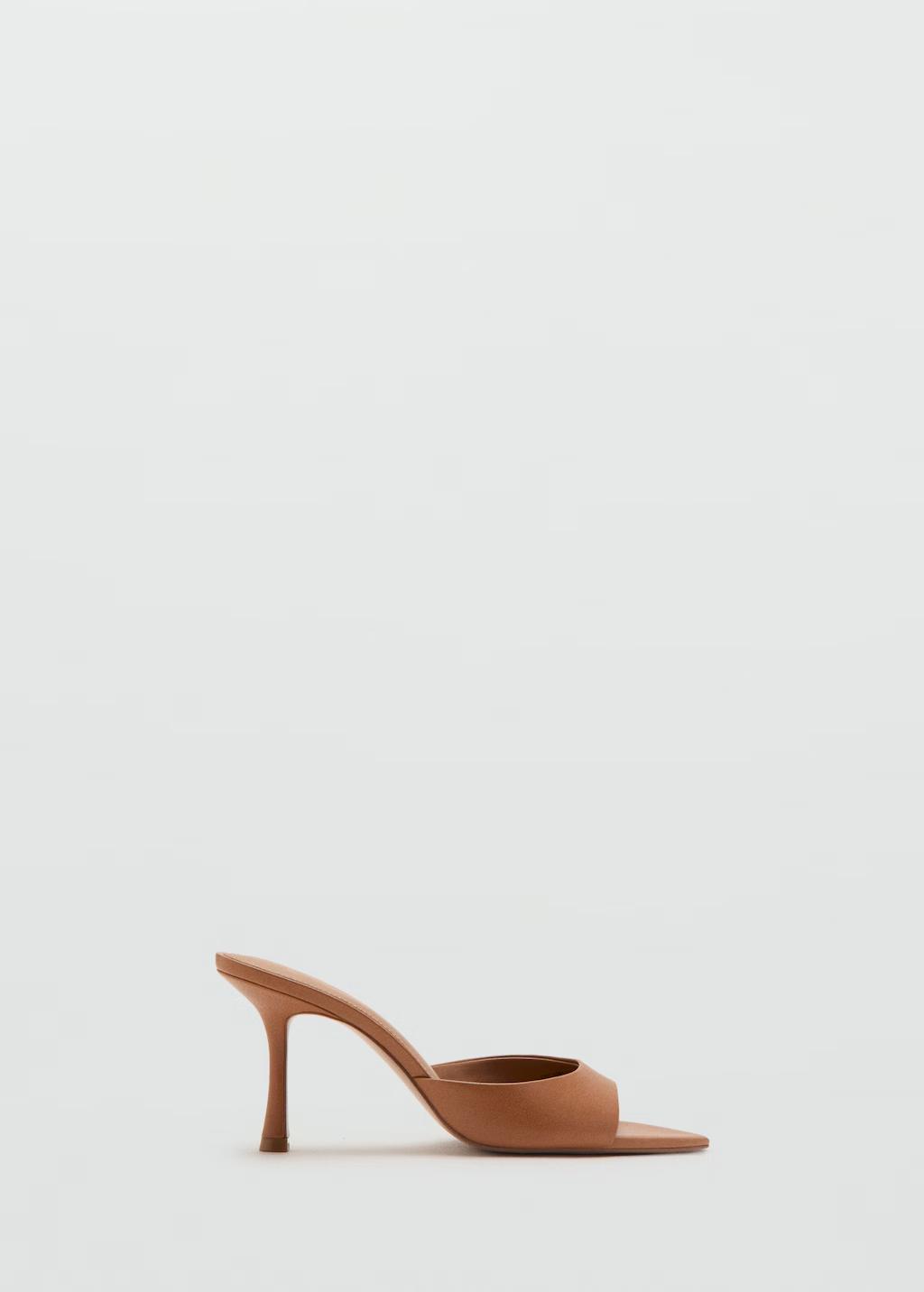 Efecto piel. Diseño destalonado. Con punta. Abertura en la parte delantera. El tacón mide 8 cm. Sin cierre. Forro interior