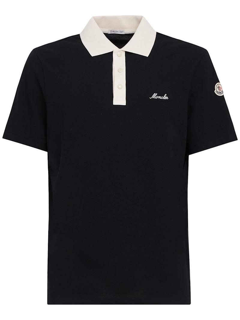 Embroidered logo cotton polo shirt - 黑色 - 男士 - Moncler - Crafted from cotton piquet.