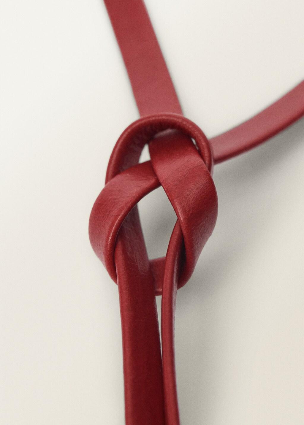 100% piel bovino. Diseño fino. Detalle de flor. Cierre de nudo. Colección Selection. Una selección de prendas refinadas, confeccionadas con tejidos de calidad para construir un armario femenino y contemporáneo. 85.0x1.0 cm